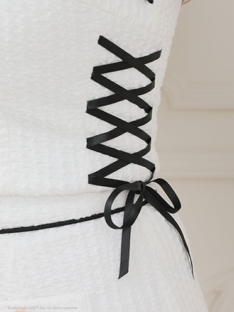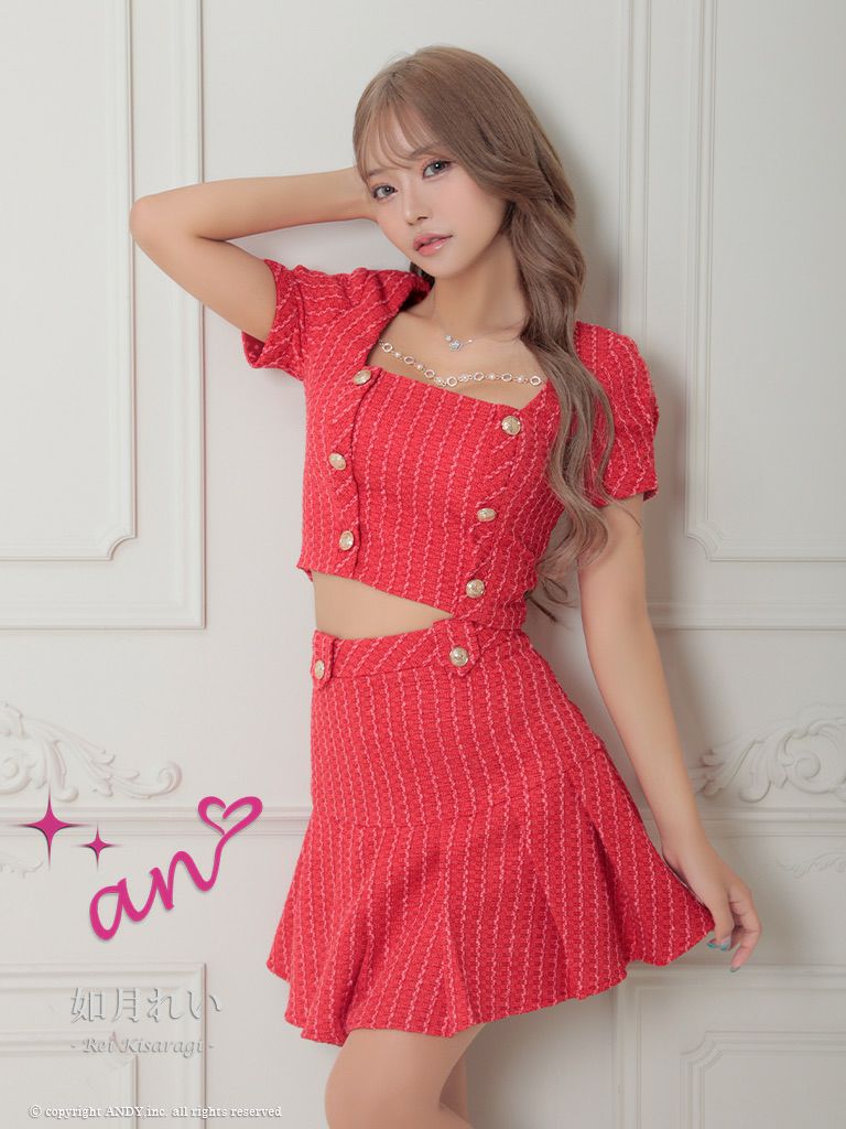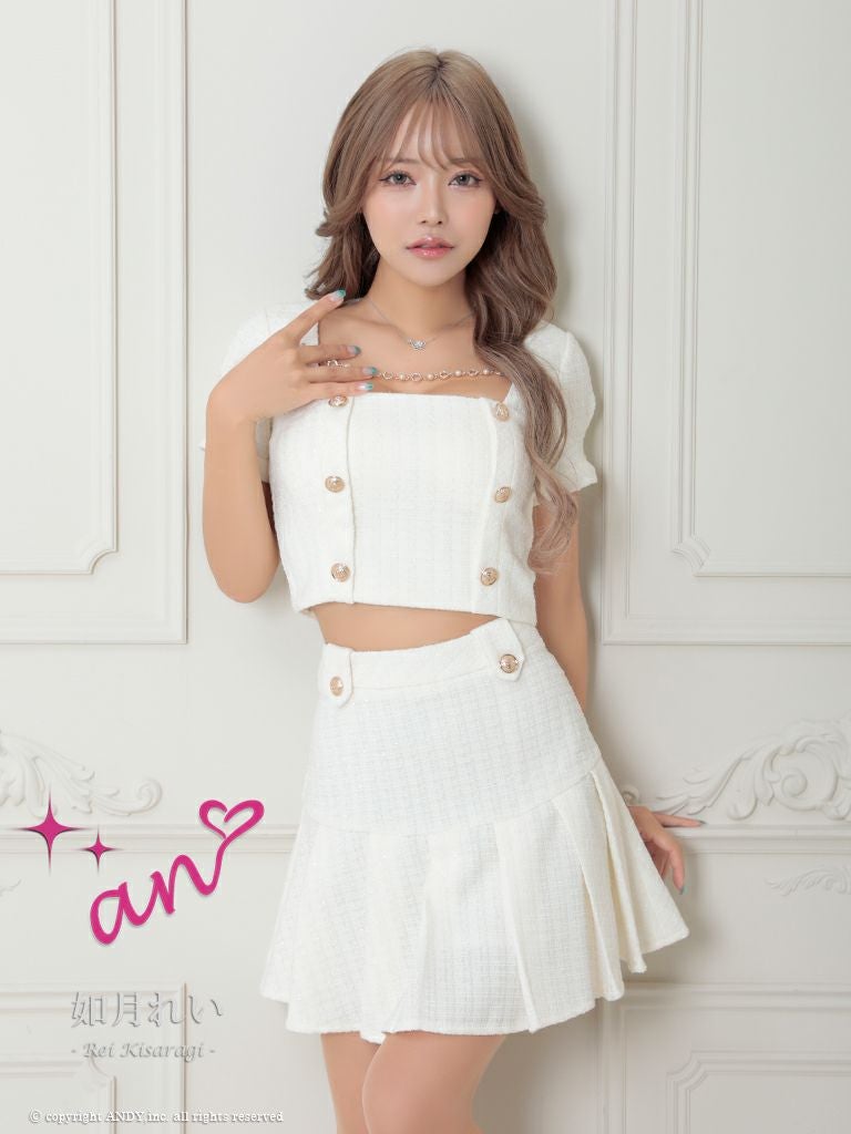 他の画像を見る 着回しの可能なセットアップドレス☆ [an/アン] 高級 半袖 2way キャミソール セットアップ リボン バストカット パールボタン ツイード 谷間魅せ フレアミニドレス ¥ 29,700 税込 在庫切れ お気に入りに追加