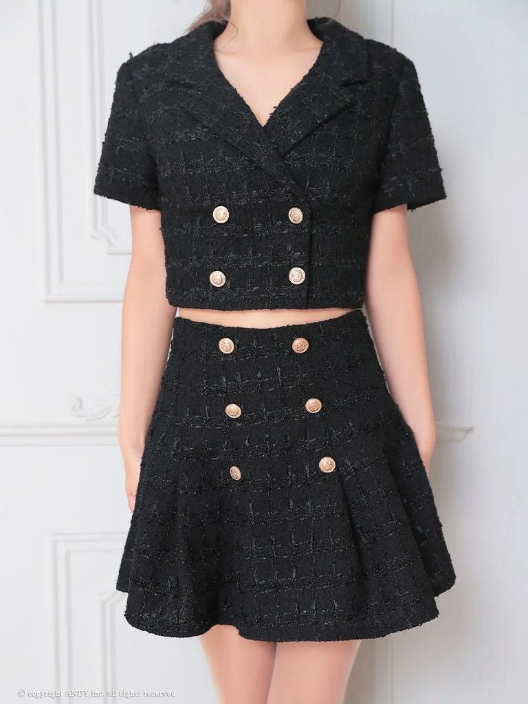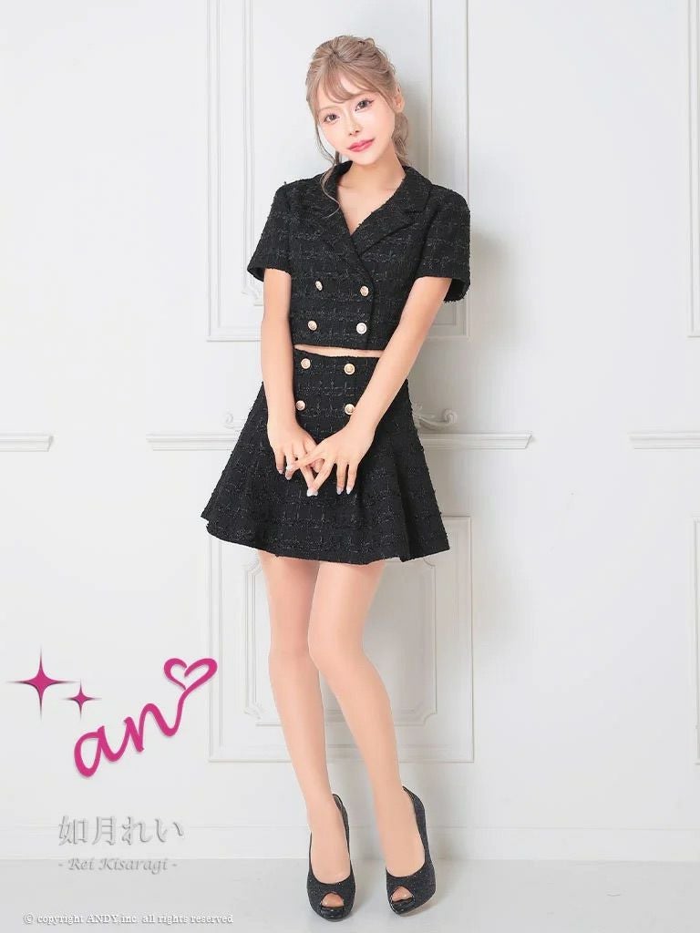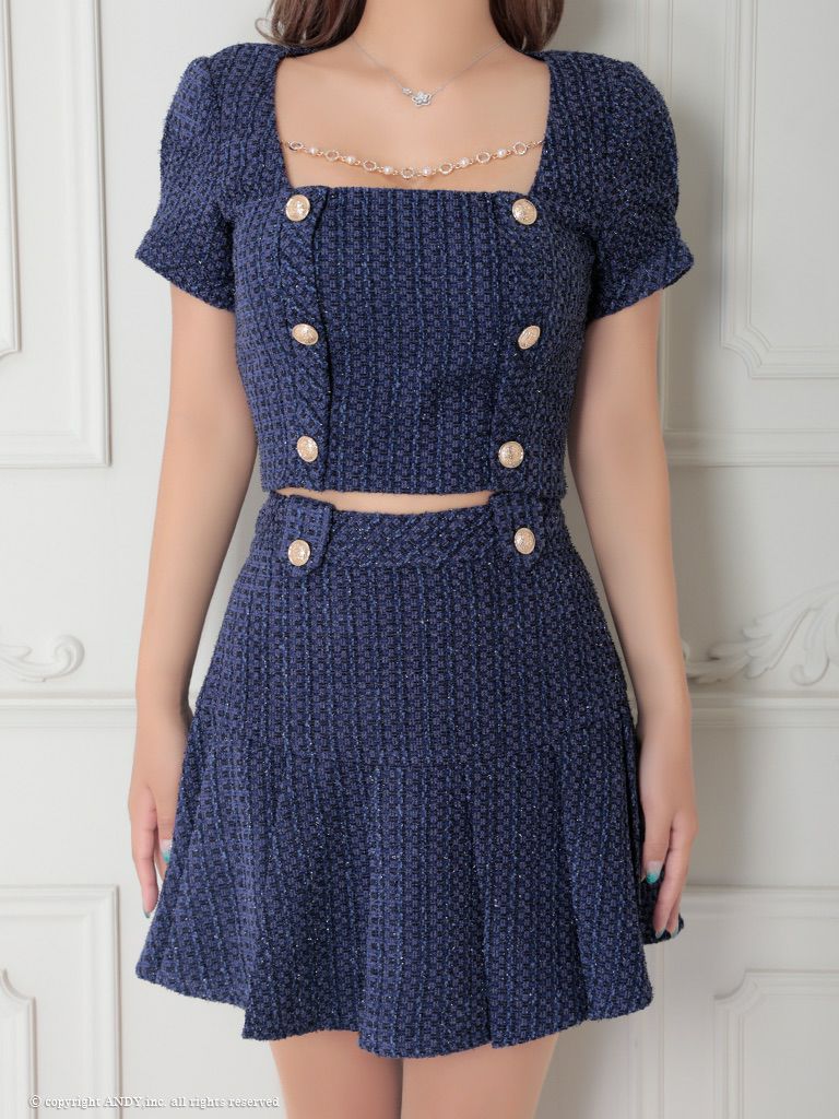 他の画像を見る トレンド感のあるデザインが魅力的な一着☆ [an/アン] 高級半袖ツイードスクエアネックセットアップチェーンゴールドボタンフレアミニドレス ¥ 29,700 税込 在庫切れ お気に入りに追加