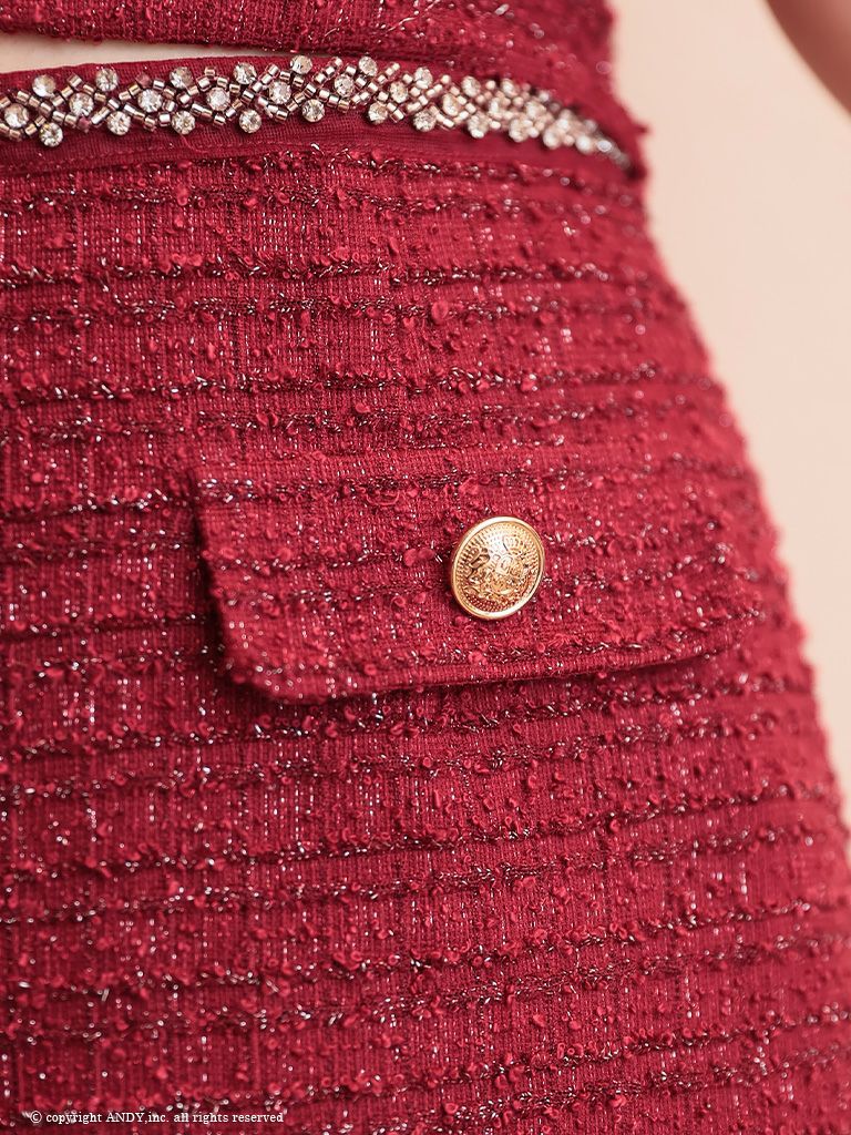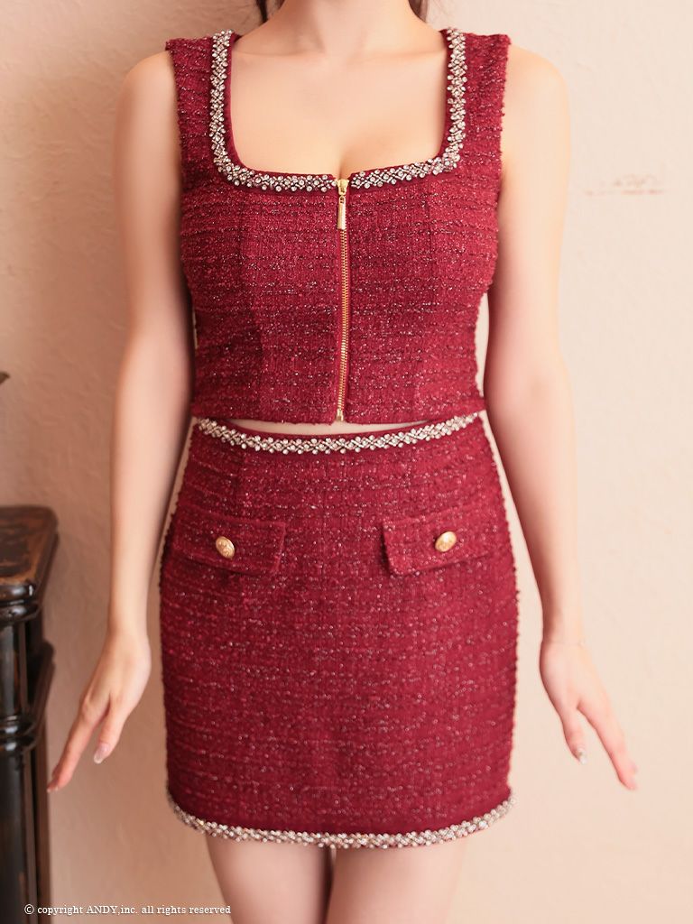 他の画像を見る 程良い肌魅せが魅力的☆ [an/アン] 高級ノースリーブ セットアップ ラメツイード ジップ ポケット ビジュー スクエアネック タイトミニドレス ¥ 28,600 税込 在庫切れ お気に入りに追加