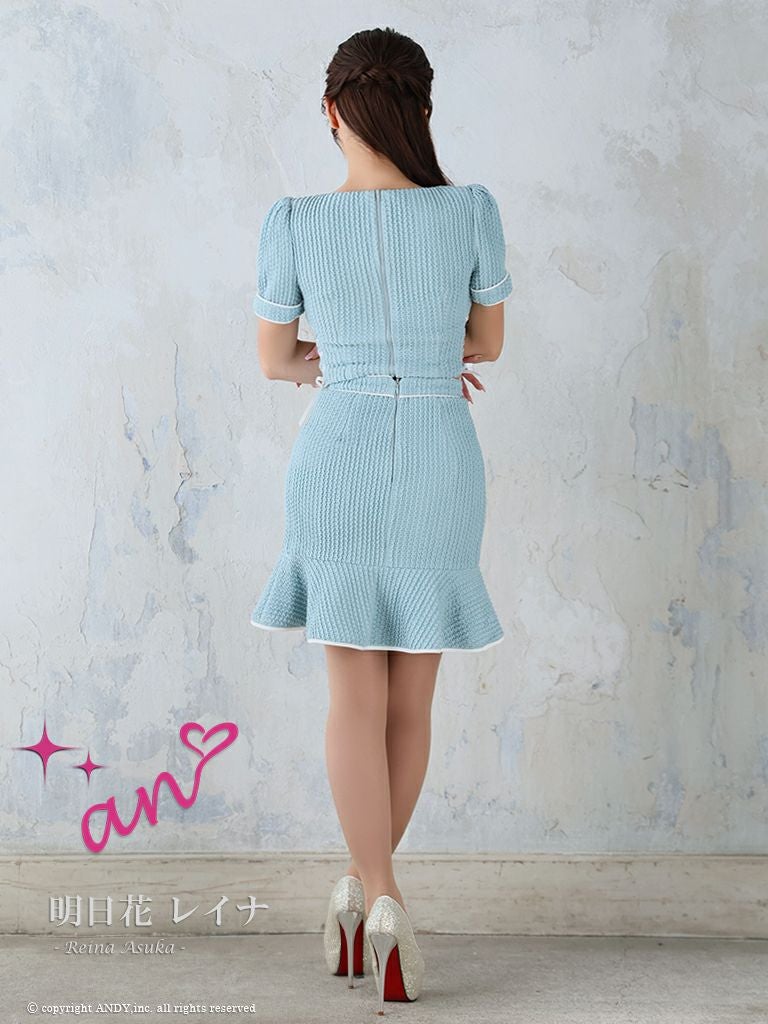 他の画像を見る パールボタンとリボンが可愛いガーリーデザイン☆ [an/アン] 高級 半袖 セットアップ ジップ リボンパールボタン バストカット 裾フリル 谷間魅せ タイトミニドレス ¥ 28,600 税込 在庫切れ お気に入りに追加