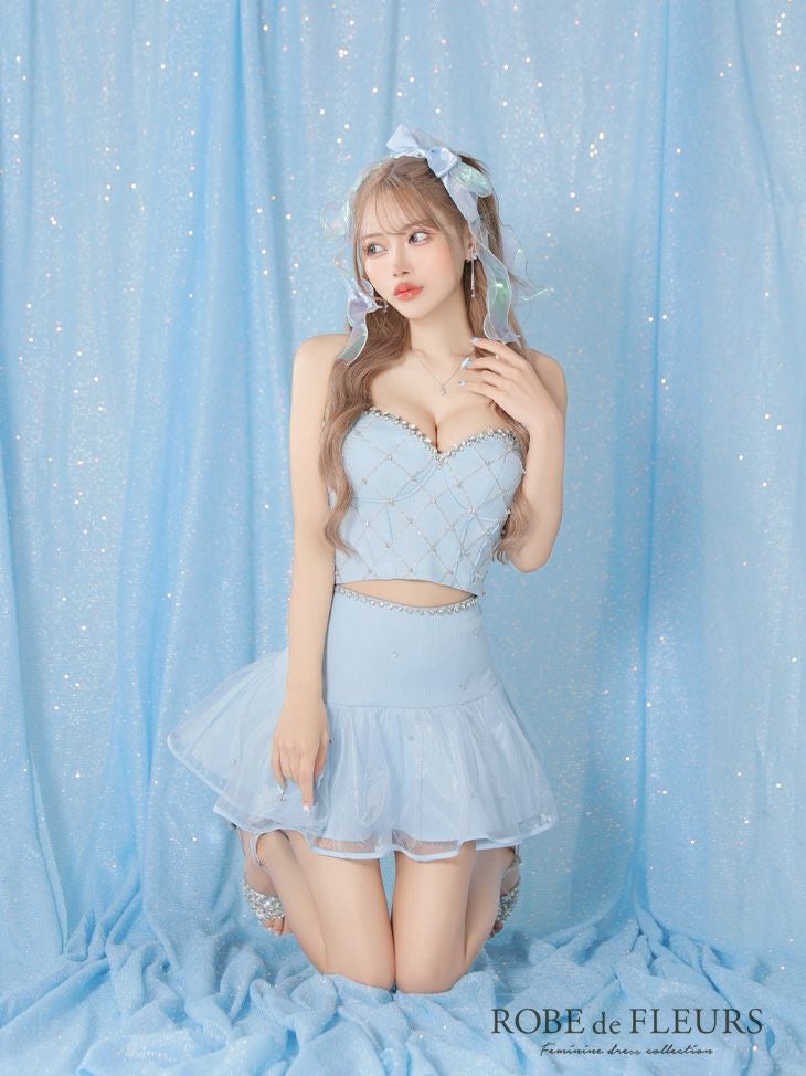 他の画像を見る 煌めくビジューでゴージャス感溢れる☆ [Angel-R/エンジェルアール] 高級バストビジューリボンセットアップノースリーブフレアミニドレス ¥ 28,380 税込 在庫切れ お気に入りに追加