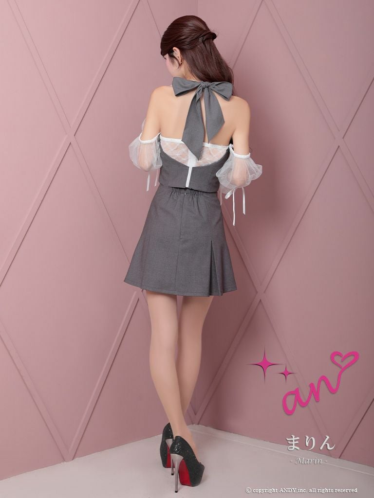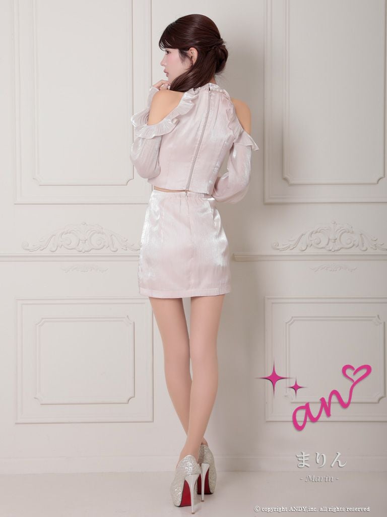他の画像を見る フリルで可愛さ溢れる☆ [an/アン] 高級 ホルターネック セットアップ 肩出し 二の腕カバー 長袖 袖あり ジップ バストカット パール シフォン フリル 谷間魅せ タイトミニドレス ¥ 27,500 税込 在庫切れ お気に入りに追加