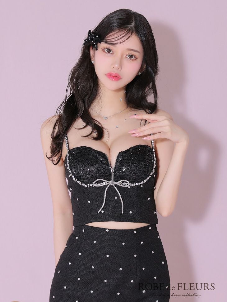 他の画像を見る 透明感のある女の子に♪ [ROBEdeFLEURS/ローブドフルール] 高級キラキラビジューバストジップリボンツイードキャミソールセットアップタイトミニドレス (一条響着用) ¥ 29,480 税込 在庫切れ お気に入りに追加
