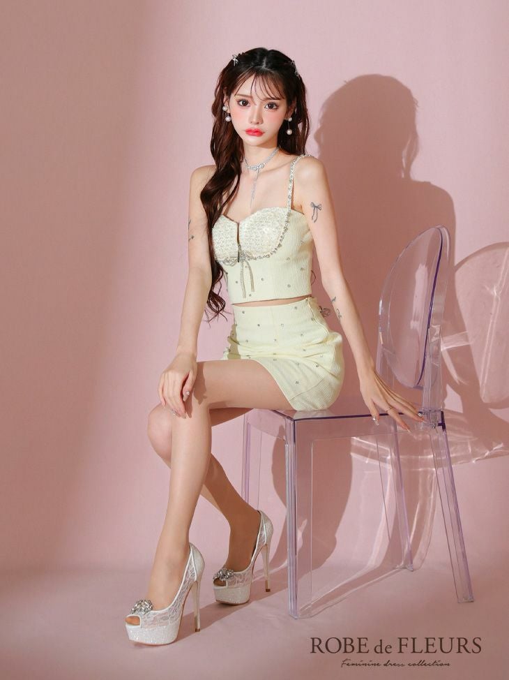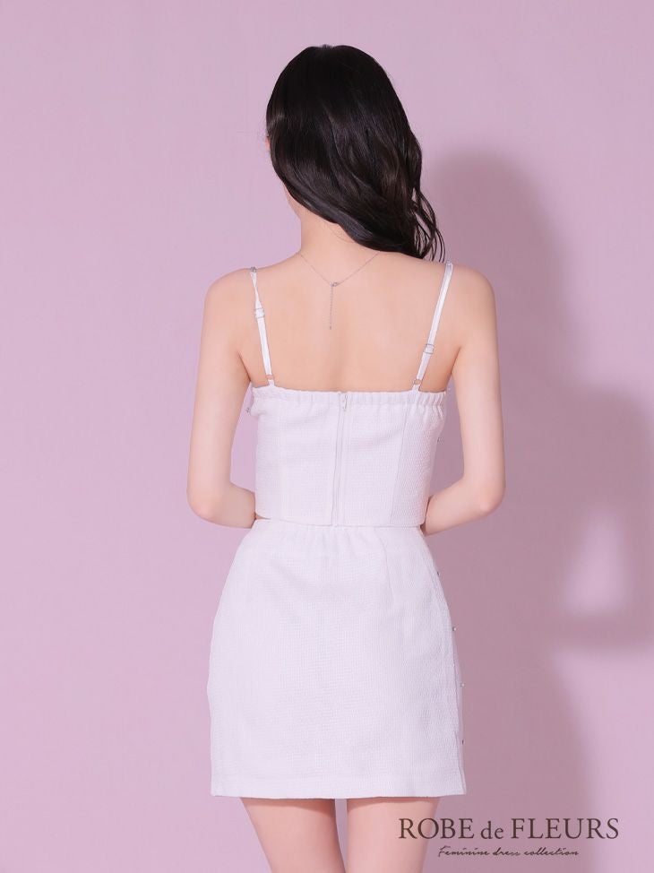 他の画像を見る 透明感溢れる可愛さを演出☆ [ROBEdeFLEURS/ローブドフルール] 高級キラキラビジューバストジップリボンツイードキャミソールセットアップタイトミニドレス ¥ 29,480 税込 在庫切れ お気に入りに追加