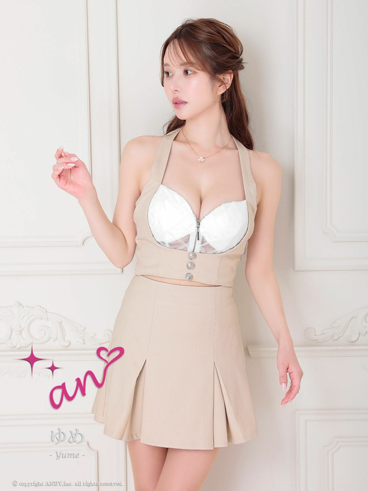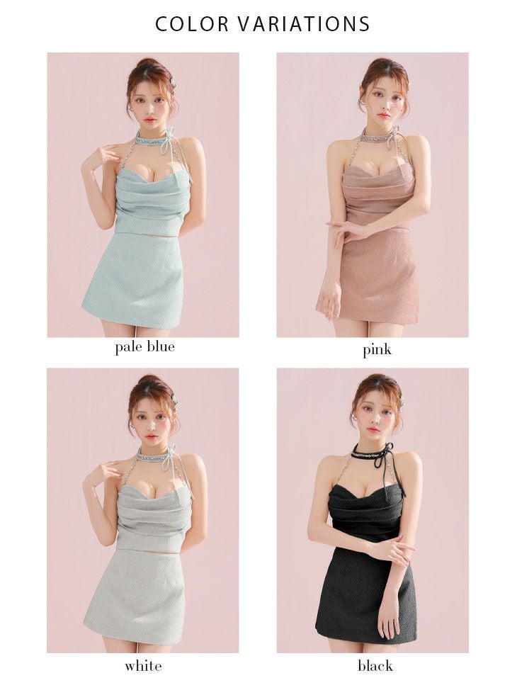 他の画像を見る パステルカラーのバリエーション☆ [an/アン] 高級ホルターネック パールチェーン ジップ フェミニン セットアップ タイトミニドレス ¥ 27,500 税込 在庫切れ お気に入りに追加