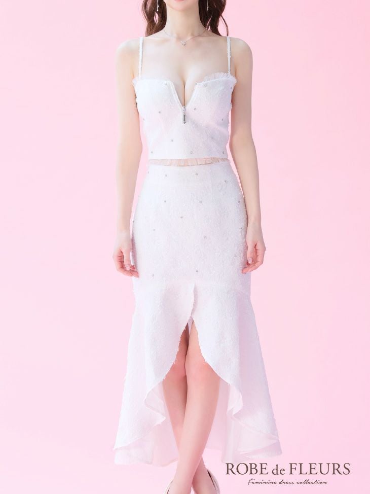他の画像を見る バストジップであざとく谷間アピール☆ [ROBEdeFLEURS/ローブドフルール] 高級キャミソールセットアップジャガードジップマーメイドロングテールドレス ¥ 32,780 税込 在庫切れ お気に入りに追加
