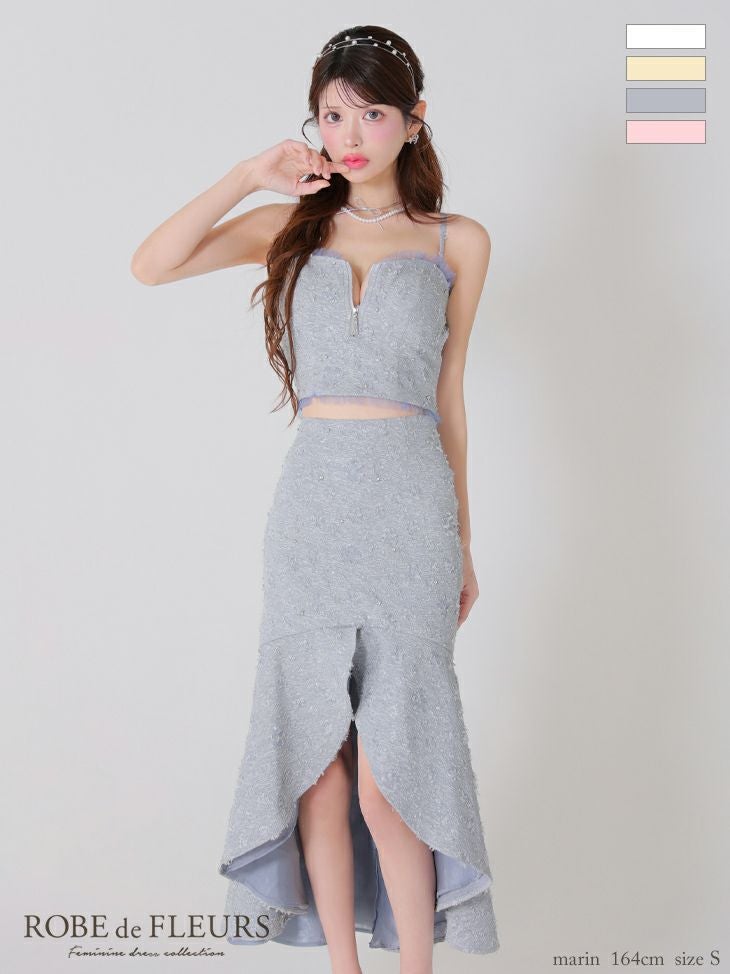 他の画像を見る 女性らしさをたっぷり引き出す☆ [ROBEdeFLEURS/ローブドフルール] 高級キャミソールセットアップジャガードジップマーメイドロングテールドレス ¥ 32,780 税込 在庫切れ お気に入りに追加