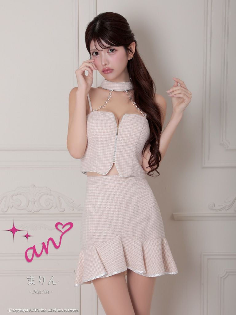 他の画像を見る フリルのスカートが甘い印象に☆ [an/アン] 高級ホルターネック パールチェーン ジップ フェミニン セットアップ タイトミニドレス ¥ 27,500 税込 在庫切れ お気に入りに追加