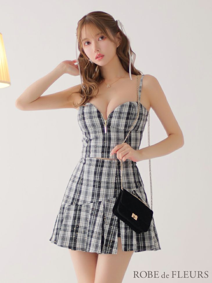 他の画像を見る ちょっぴりCUTEなさわやかな雰囲気☆ [Angel-R/エンジェルアール] 高級バストビジューチェック柄ツイードセットアップキャミソールフレアミニドレス ¥ 29,480 税込 在庫切れ お気に入りに追加