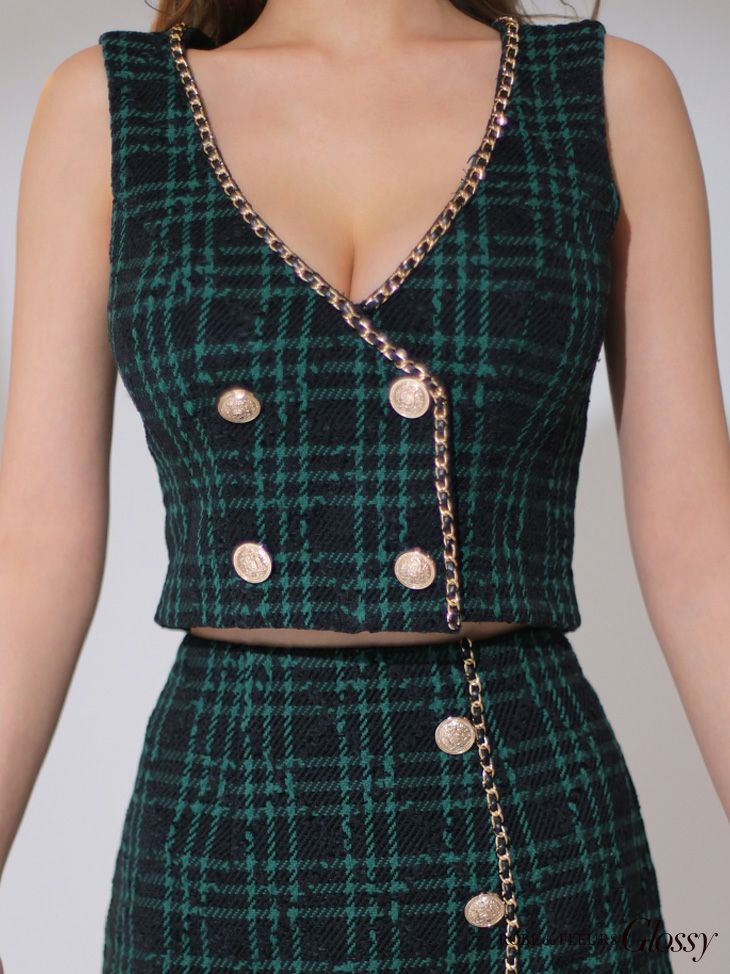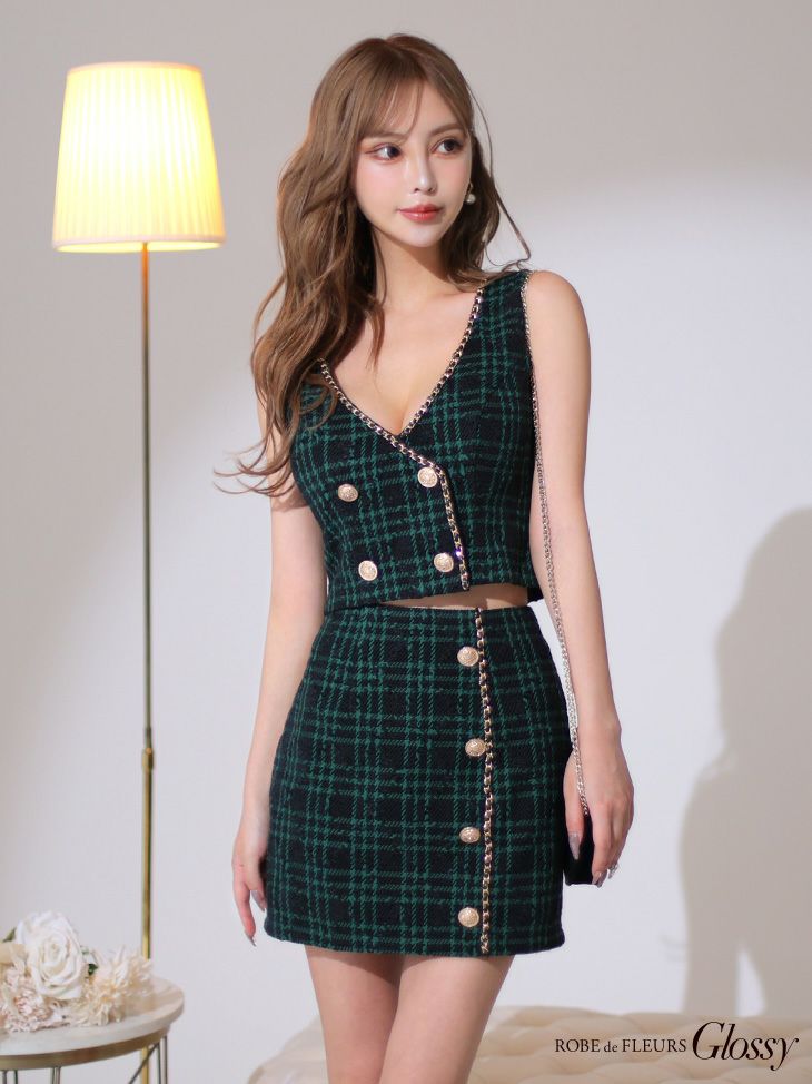 他の画像を見る ホリデーシーズンにぴったり☆ [ROBEdeFLEURSGlossy/ローブドフルールグロッシー] 高級ホリデーチェック柄ツイードノースリーブセットアップタイトミニドレス ¥ 29,480 税込 在庫切れ お気に入りに追加