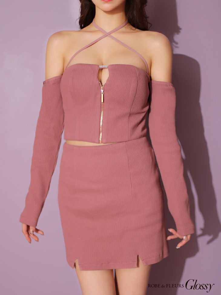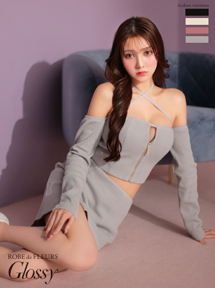 他の画像を見る セットアップでお腹チラ見せ☆ [ROBEdeFLEURSGlossy/ローブドフルールグロッシー] 高級 ジップ バストカット アームカバー クロスデザイン ワンカラー オフショルダー セットアップ 谷間魅せ タイトミニドレス ¥ 26,180 税込 在庫切れ お気に入りに追加