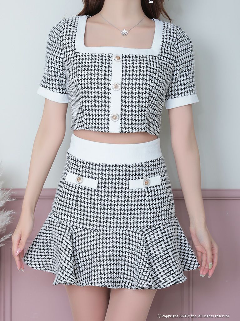他の画像を見る 落ち着いたカラーで大人かわいいセットアップミニドレス♪ [an/アン] 高級ゴールドボタンチェック柄フレアセットアップ半袖ミニ丈ドレス ¥ 29,700 税込 在庫切れ お気に入りに追加
