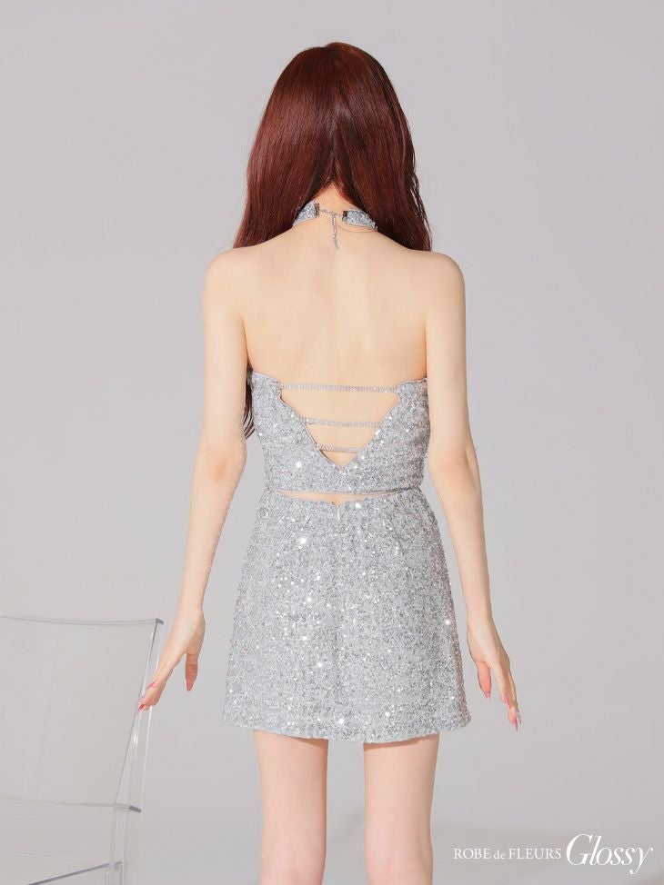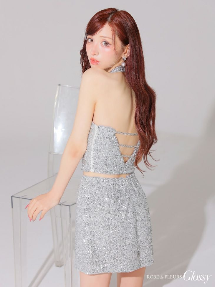 他の画像を見る まばゆい輝きを放つ♡ [ROBEdeFLEURSGlossy/ローブドフルールグロッシー] 高級 クロスホルターネック スパンコール 背中魅せ セットアップ タイトミニドレス ¥ 27,280 税込 お気に入りに追加