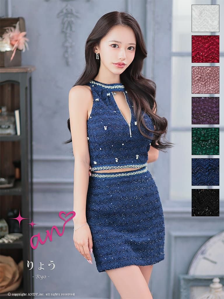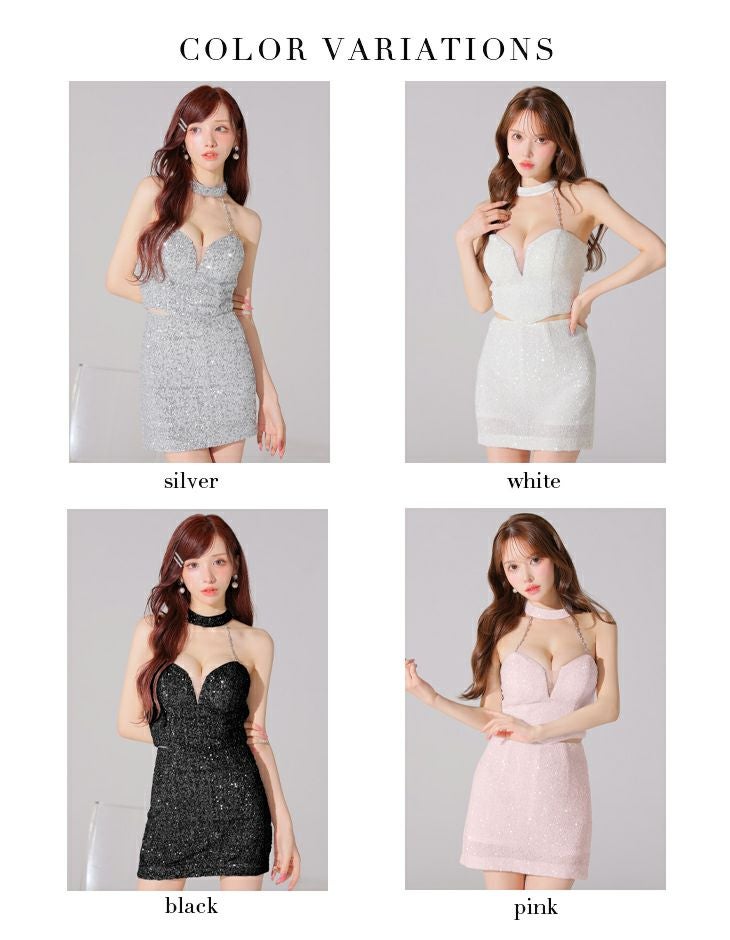 他の画像を見る チョーカーを取り外してベアにもできる♡ [ROBEdeFLEURSGlossy/ローブドフルールグロッシー] 高級 2way ホルターネック スパンコール 背中魅せ バストシースルー セットアップ タイトミニドレス ¥ 29,480 税込 お気に入りに追加