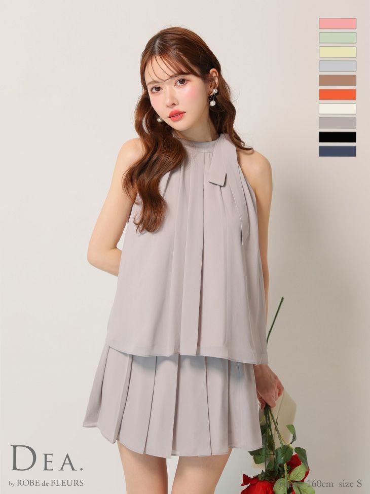 他の画像を見る ふんわりシフォンが女性らしい♡ [DEA.byROBEdeFLEURS/ディアバイローブドフルール] 高級 ブランド Aラインミニドレス セットアップ ノースリーブ シフォン 胸元カバー シンプル ¥ 29,480 税込 お気に入りに追加