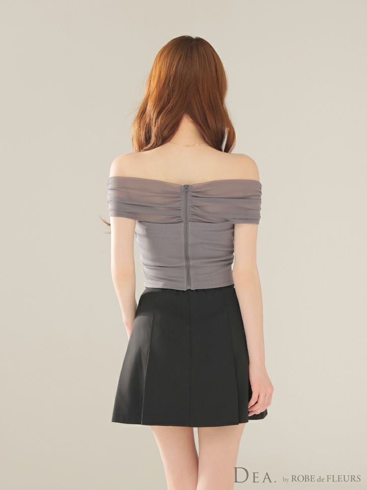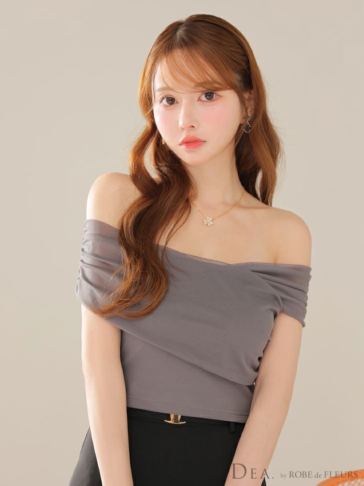他の画像を見る 着心地抜群のセットアップ☆ [DEA.byROBEdeFLEURS/ディアバイローブドフルール] 高級 セットアップ ギャザー オフショルダー ウエストベルト チュール カジュアル フレアミニドレス ¥ 27,280 税込 お気に入りに追加