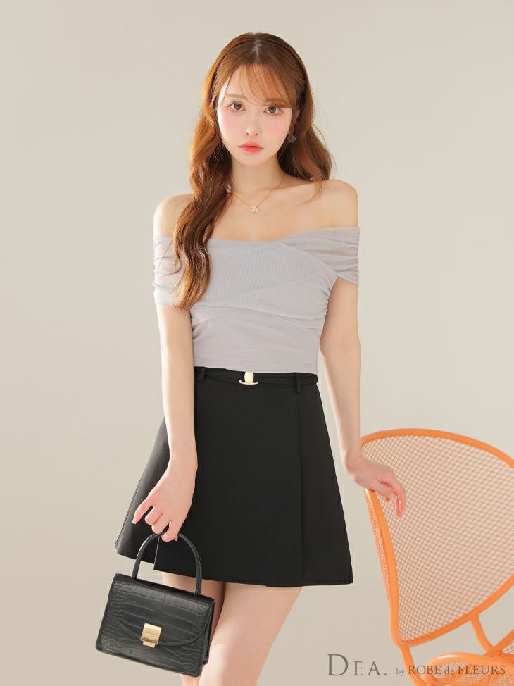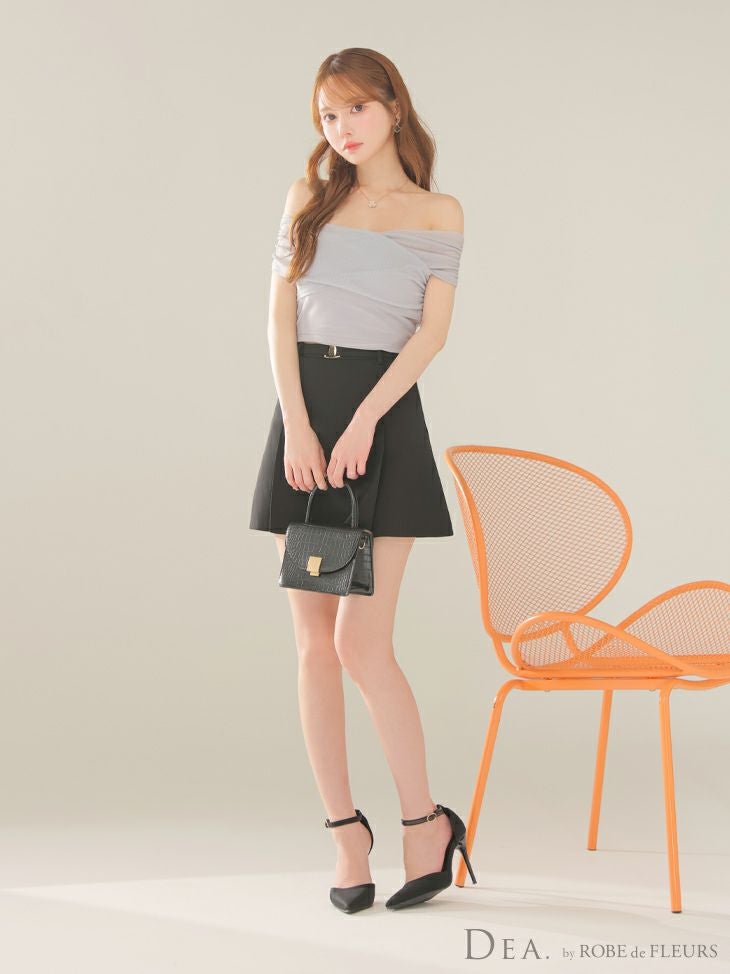 他の画像を見る デコルテを綺麗に魅せるデザイン☆ [DEA.byROBEdeFLEURS/ディアバイローブドフルール] 高級 セットアップ ギャザー オフショルダー ウエストベルト チュール カジュアル フレアミニドレス ¥ 27,280 税込 お気に入りに追加