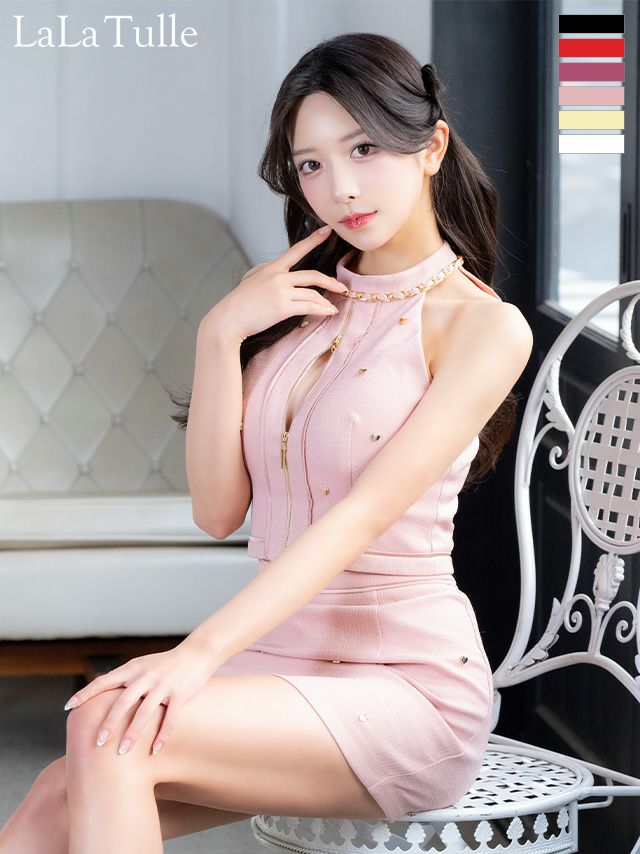 他の画像を見る 可愛くスタイルアップを狙える♡ [ROBEdeFLEURS/ローブドフルール] 高級 ブランド タイトミニドレス セットアップ ホルターネック ジップ ハートスタッズ ゴールドチェーン (伊藤舞雪着用) ¥ 27,280 税込 お気に入りに追加