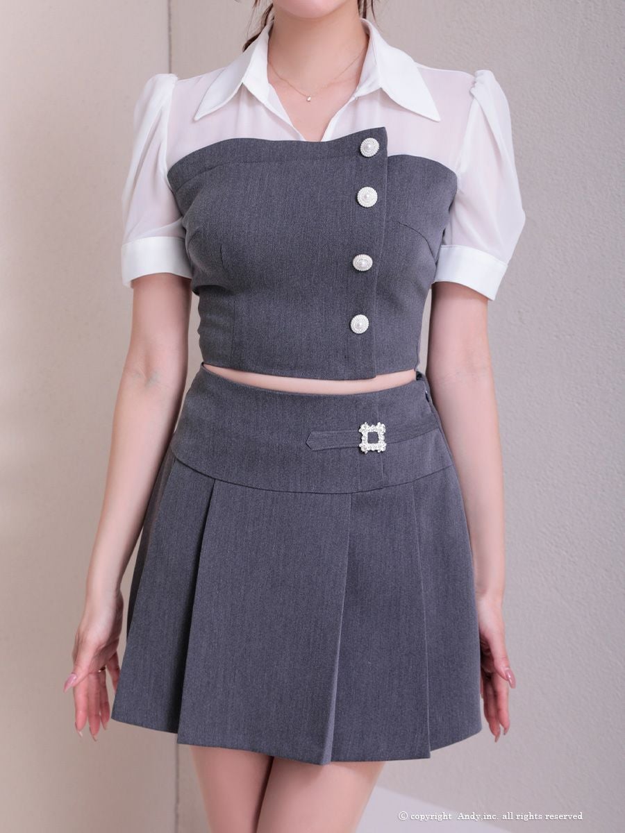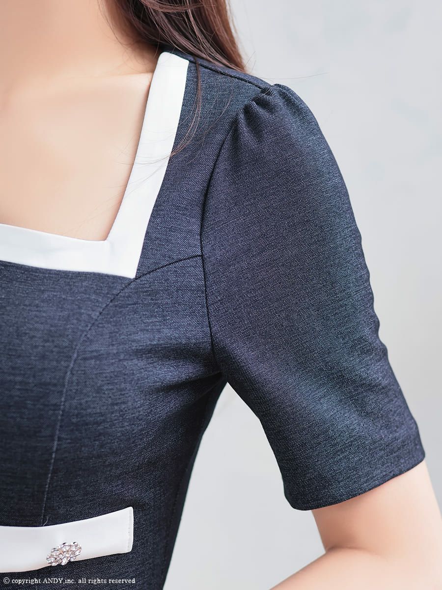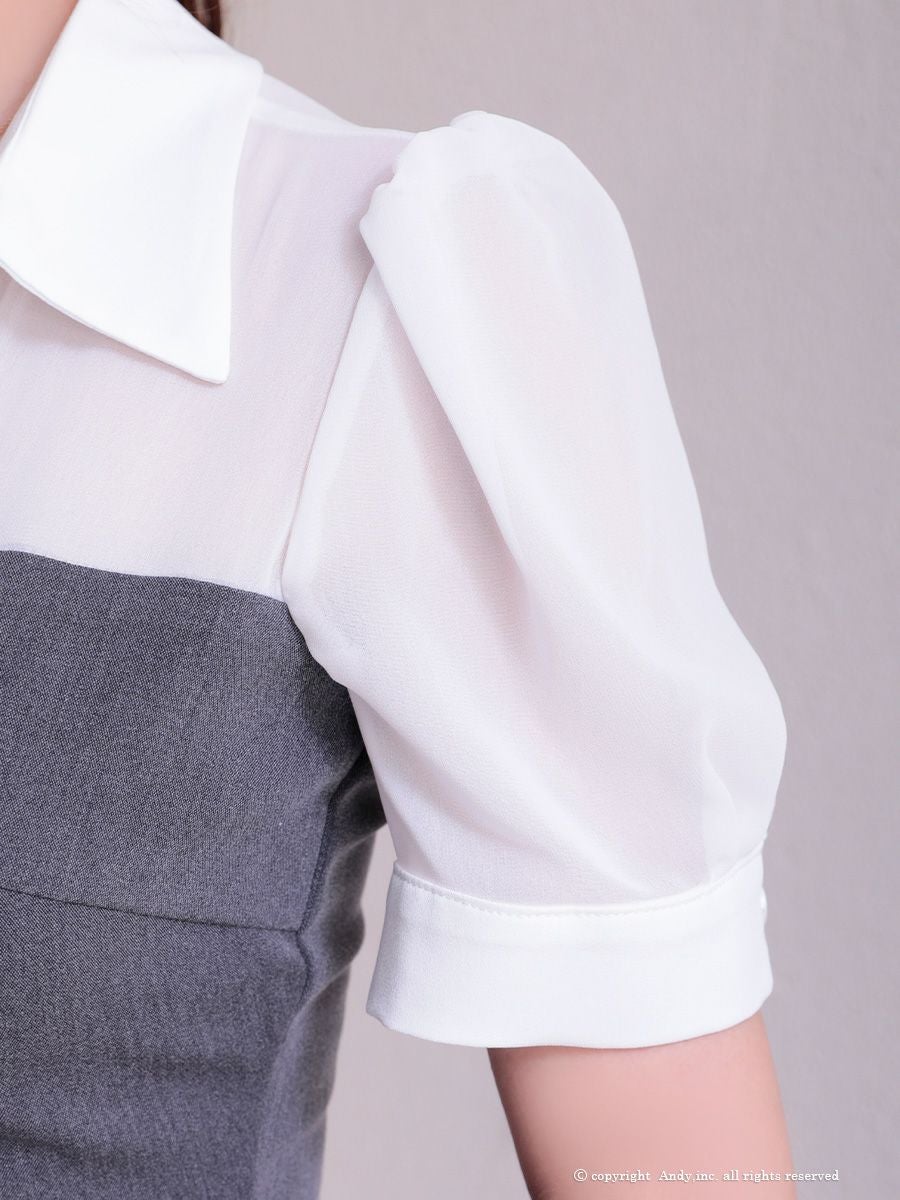 他の画像を見る 同伴にも着用できる万能デザイン★ [Andy/アンディ] 高級 半袖 セットアップ 襟付き パールボタン バイカラー プリーツ フレアミニドレス ¥ 29,700 税込 お気に入りに追加