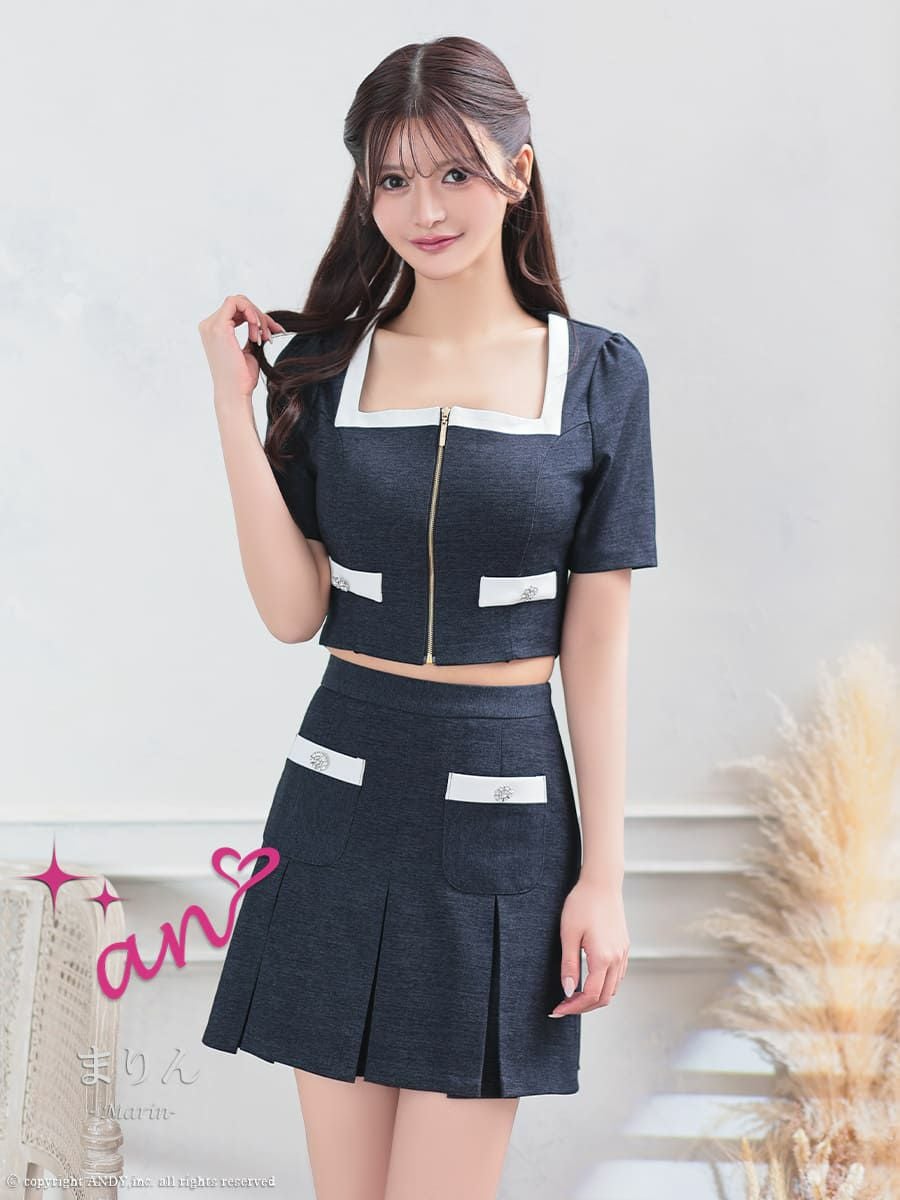 他の画像を見る 同伴にも使える万能デザインのセットアップ★ [an/アン] 高級 半袖 スクエアネック バイカラー ジップ セットアップ プリーツ フレアミニドレス ¥ 28,600 税込 お気に入りに追加