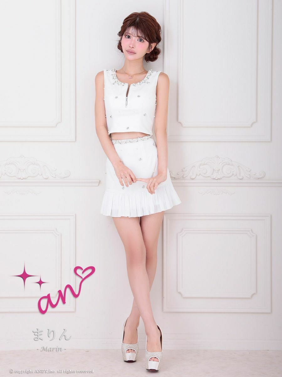 他の画像を見る ヘルシーな肌魅せであざとい色気を引き出す★ [an/アン] 高級 ノースリーブ フロントジップ ビジュー セットアップ 谷間魅せ タイトミニドレス ¥ 30,800 税込 お気に入りに追加