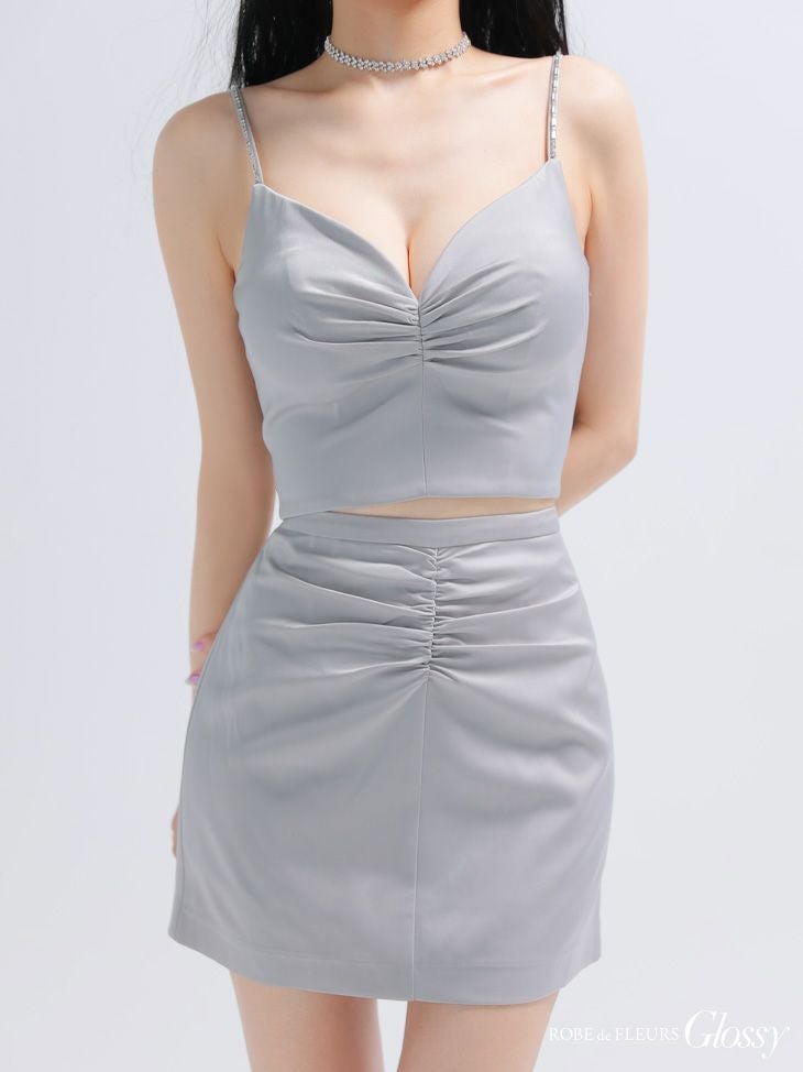 他の画像を見る シンプルなデザインが美しい☆ [ROBEdeFLEURSGlossy/ローブドフルールグロッシー] 高級 ブランド タイトミニドレス 谷間 キャミソール セットアップ ギャザー サテン シンプル ¥ 28,380 税込 お気に入りに追加