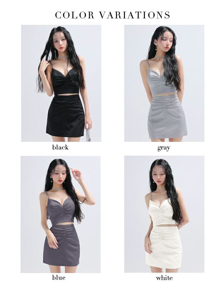 他の画像を見る お洒落に着こなせるデザイン☆ [ROBEdeFLEURSGlossy/ローブドフルールグロッシー] 高級 ブランド タイトミニドレス 谷間 キャミソール セットアップ ギャザー サテン シンプル ¥ 28,380 税込 お気に入りに追加