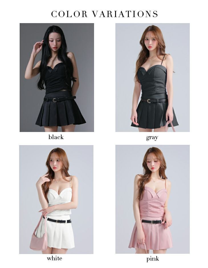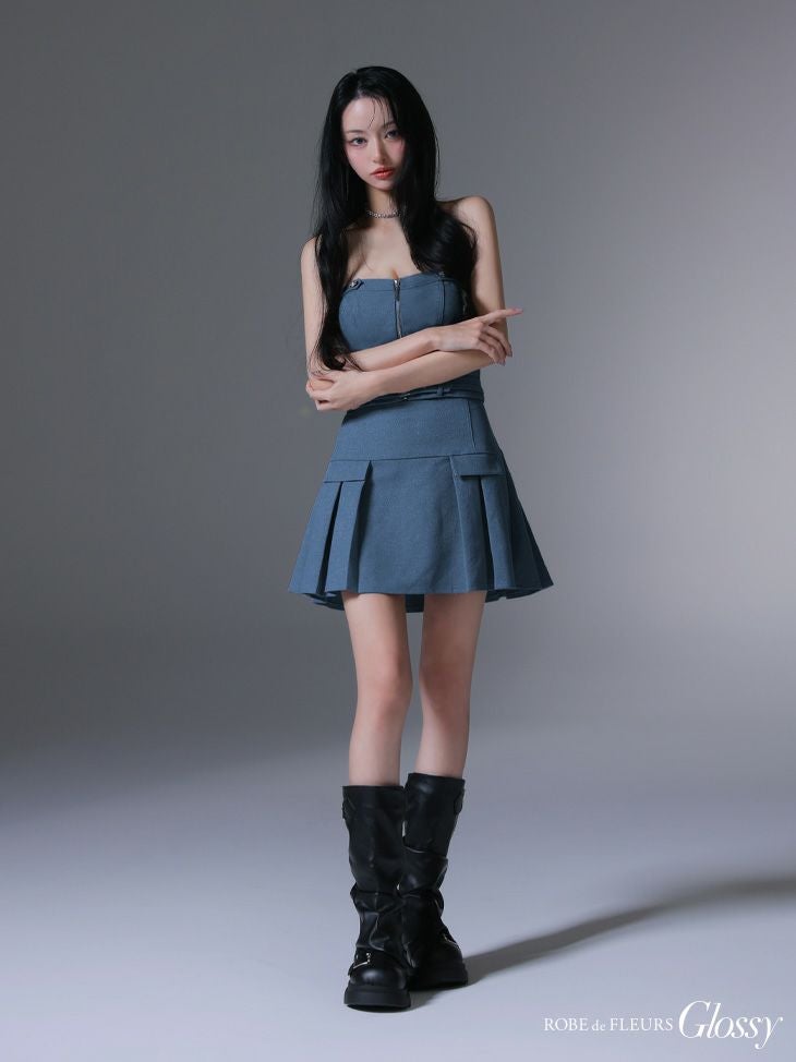 他の画像を見る プリーツ入りで美脚効果抜群♡ [ROBEdeFLEURSGlossy/ローブドフルールグロッシー] 高級 2way キャミソール バストジップ ウエストベルト セットアップ プリーツ フレアミニドレス ¥ 29,480 税込 お気に入りに追加