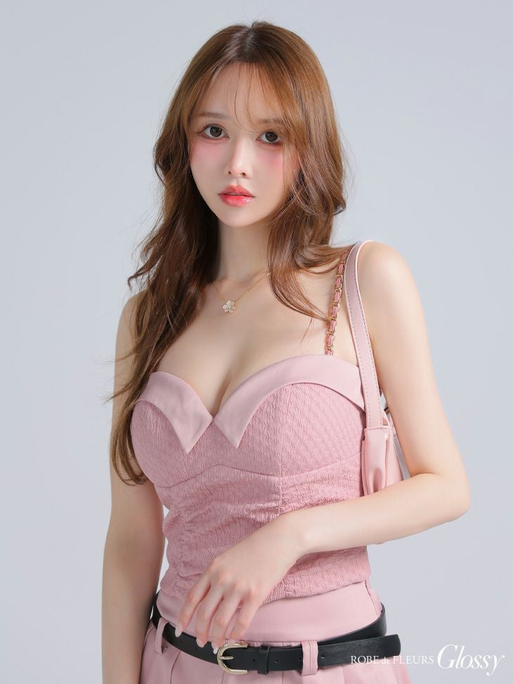 他の画像を見る ハートカットでsexyなバストを演出♡ [ROBEdeFLEURSGlossy/ローブドフルールグロッシー] 高級 チェーンキャミソール ハートカット 谷間魅せ セットアップ ウエストベルト プリーツ フレアミニドレス ¥ 27,280 税込 お気に入りに追加