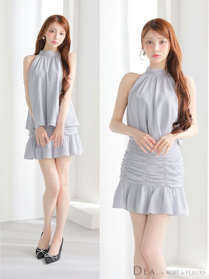 他の画像を見る 上品レディに格上げ♡ [DEA.byROBEdeFLEURS/ディアバイローブドフルール] 高級 ホルターネック ドット柄 シフォン ビジューチェーン セットアップ ギャザー 裾フリル フレアミニドレス ¥ 36,080 税込 お気に入りに追加