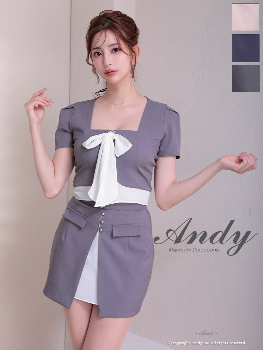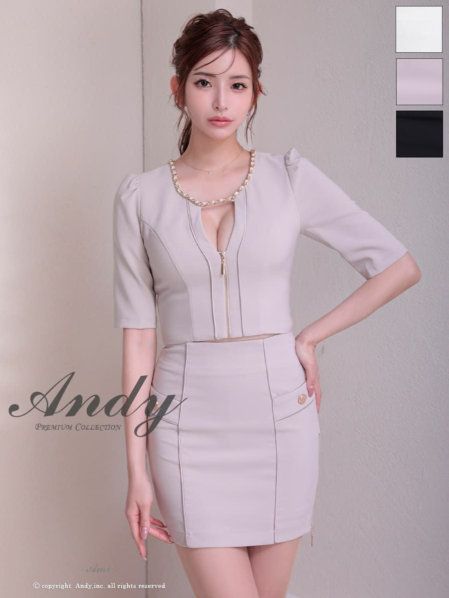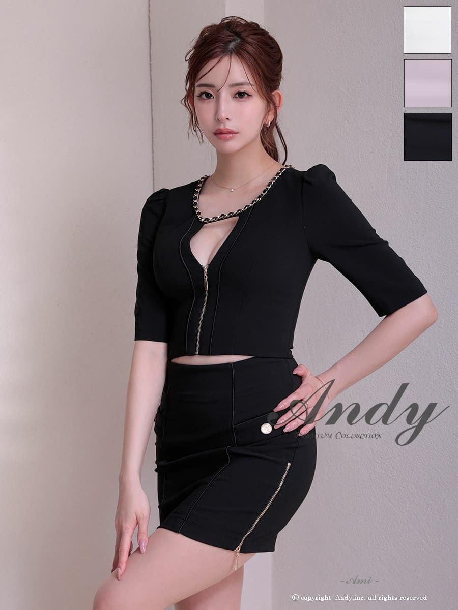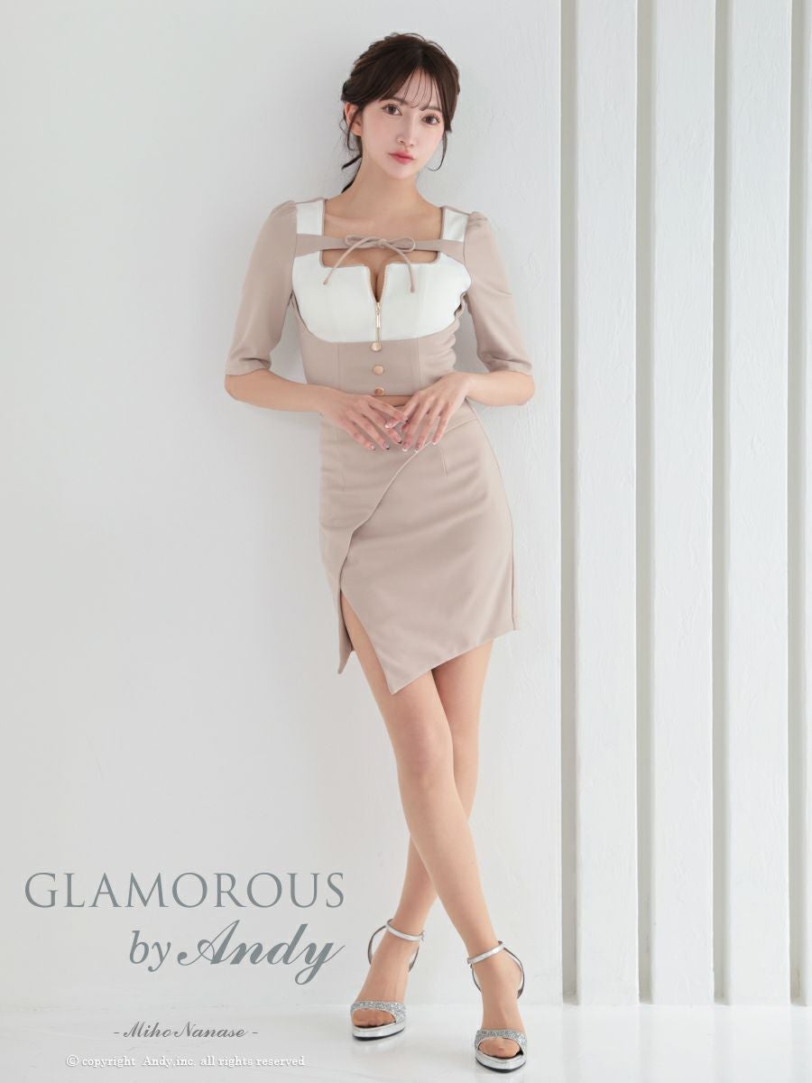 他の画像を見る ガーリーさもプラスしたセットアップ☆ [AndyGLAMOROUS/アンディグラマラス] 高級 袖あり リボン ジップデザイン バイカラー スリット セットアップ タイトミニ キャバドレス ¥ 27,500 税込 お気に入りに追加