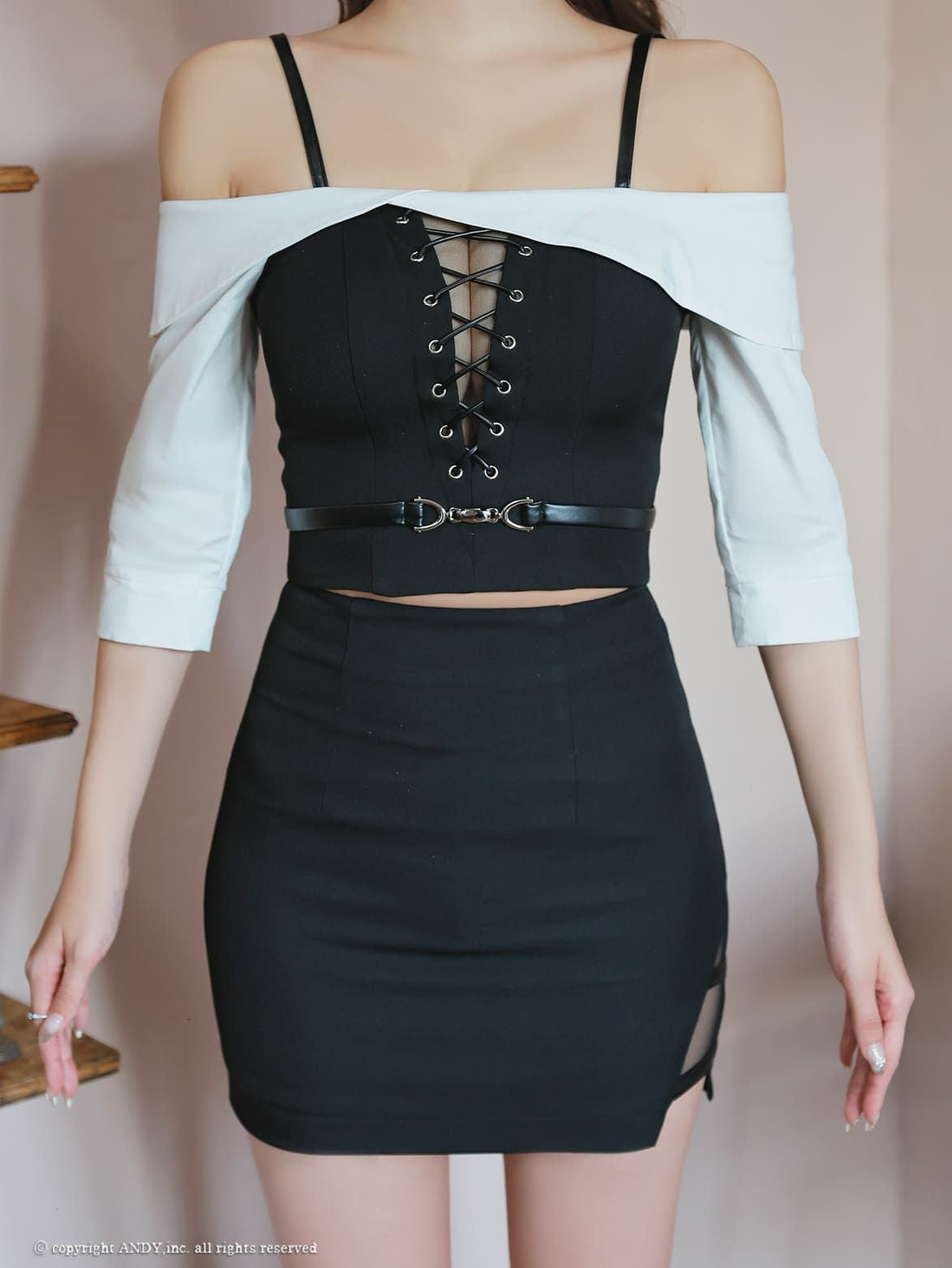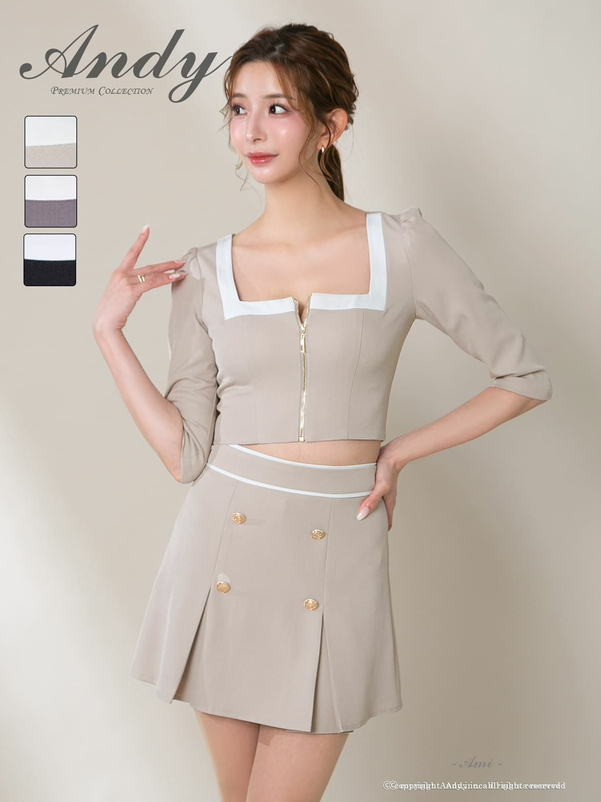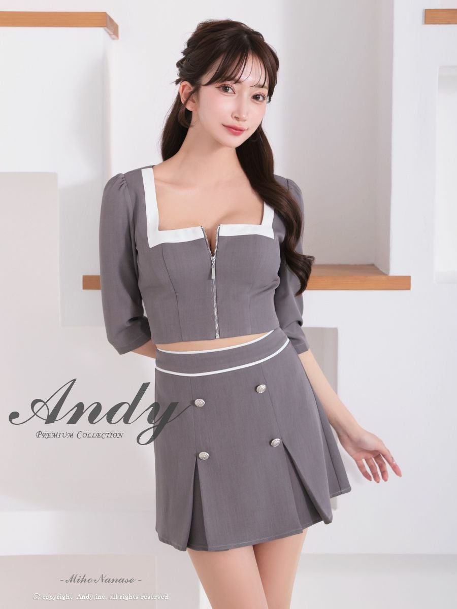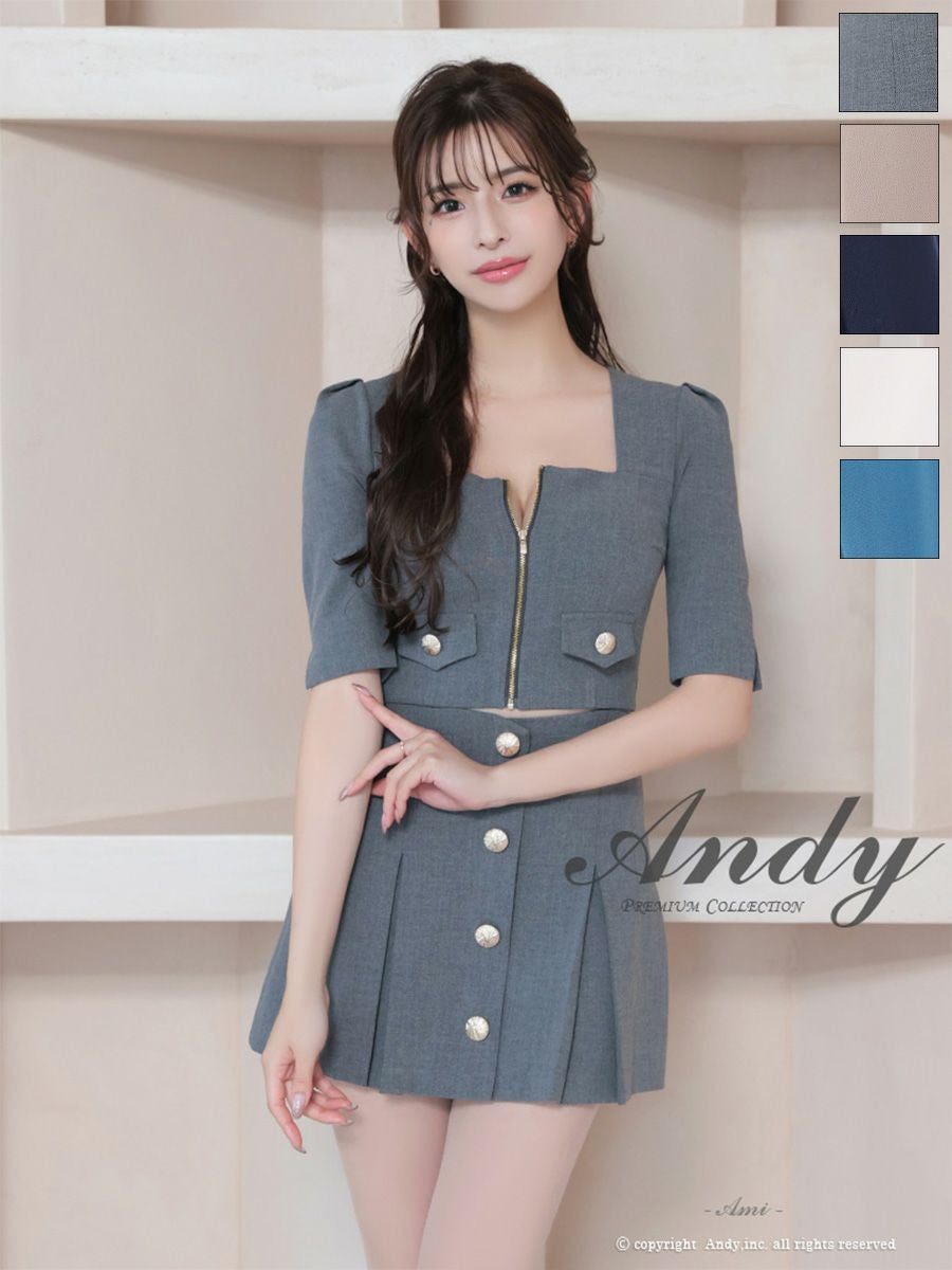 他の画像を見る ガーリーさもプラスしたセットアップ☆ [AndyGLAMOROUS/アンディグラマラス] 高級 袖あり リボン ジップデザイン バイカラー スリット セットアップ タイトミニ キャバドレス ¥ 27,500 税込 お気に入りに追加