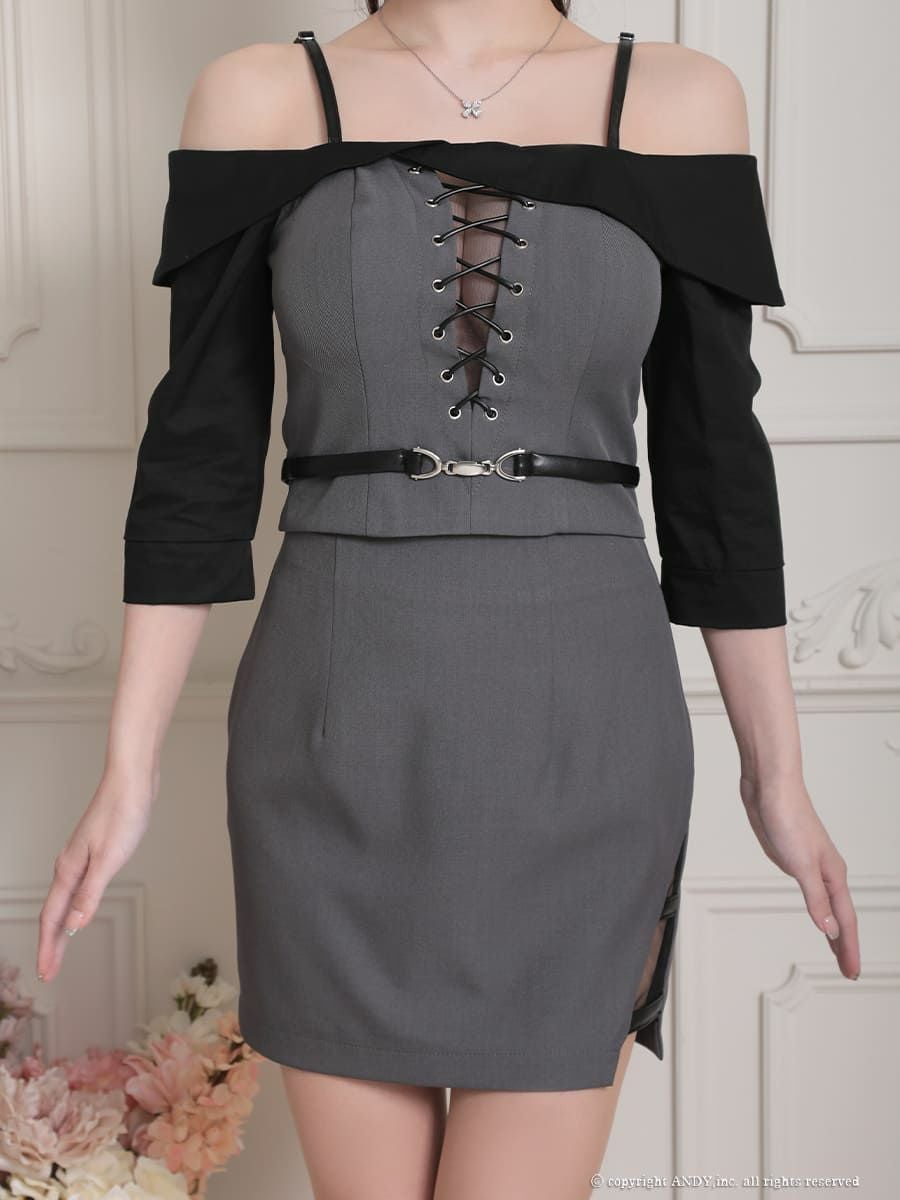 他の画像を見る 程よい肌見せが可愛い♡ [Angel-R/エンジェルアール] 高級 アシンメトリー 肩出し 二の腕カバー ビジュー ラップ風 アシメスリット セットアップ タイトミニドレス ¥ 29,480 税込 お気に入りに追加