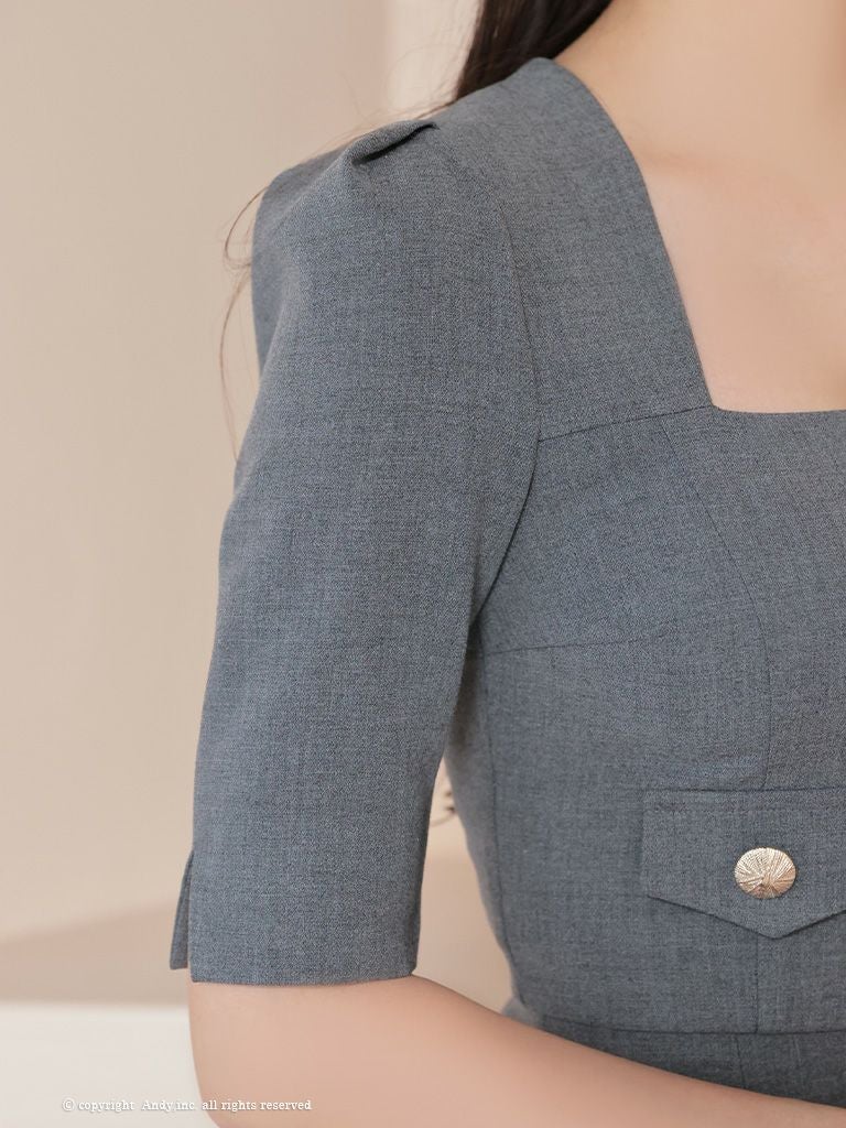 他の画像を見る スリットでさりげなく美脚効果★ [Andy/アンディ] 高級 半袖 スクエアネック リボン スリット セットアップ ゴールドボタン タイトミニドレス ¥ 29,700 税込 お気に入りに追加