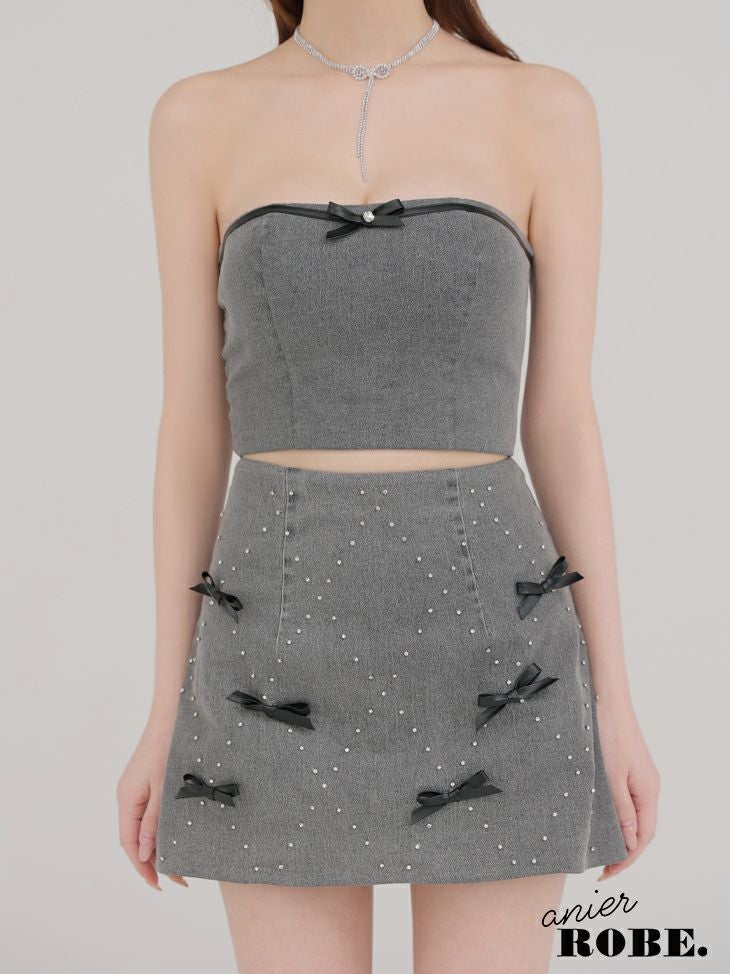 他の画像を見る リボンを纏っているようなフェミニンデザイン♡ [Angel-R/エンジェルアール] 高級 バストリボン キャミソール セットアップ パールチェーン 背中魅せ タイトミニドレス ¥ 28,380 税込 お気に入りに追加
