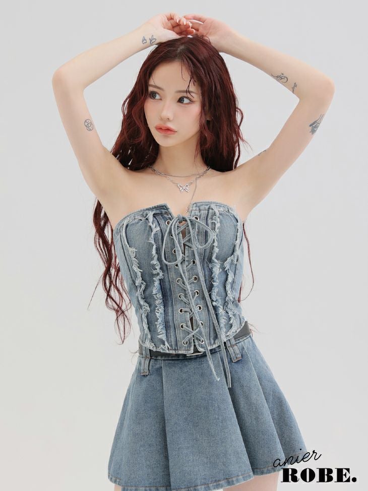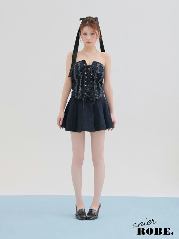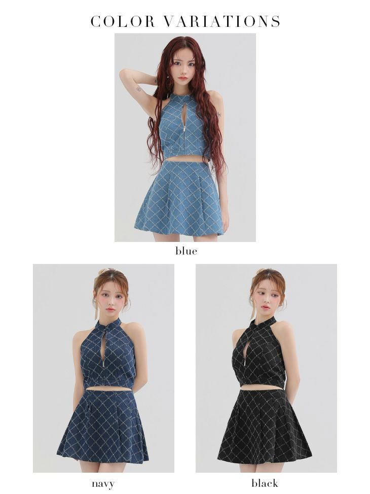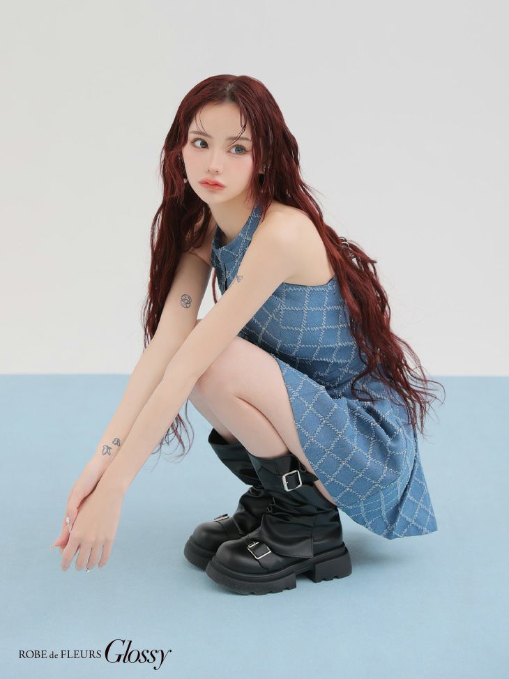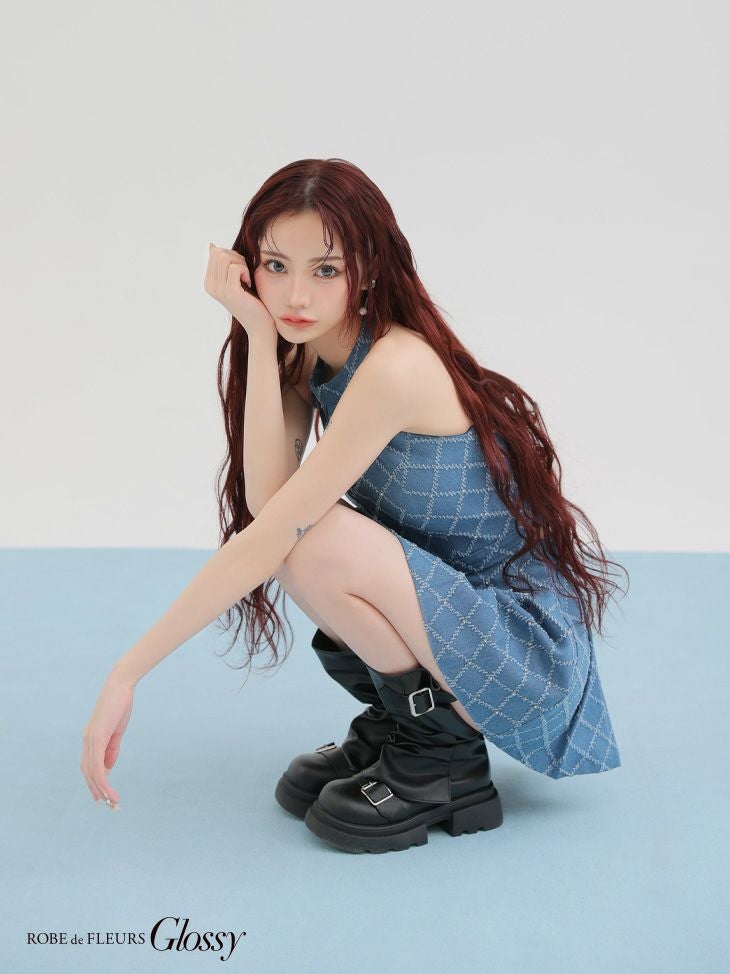 他の画像を見る CUTEな愛されシルエットをメイク♡ [ROBEdeFLEURSGlossy/ローブドフルールグロッシー] 高級 ブランド Aラインミニドレス ホルターネック セットアップ ジップ デニム ¥ 32,780 税込 お気に入りに追加