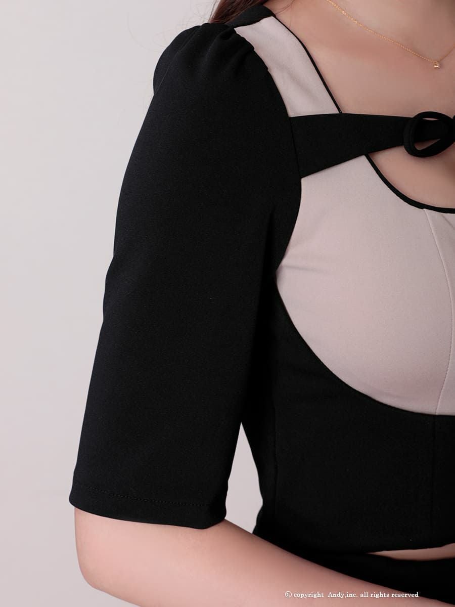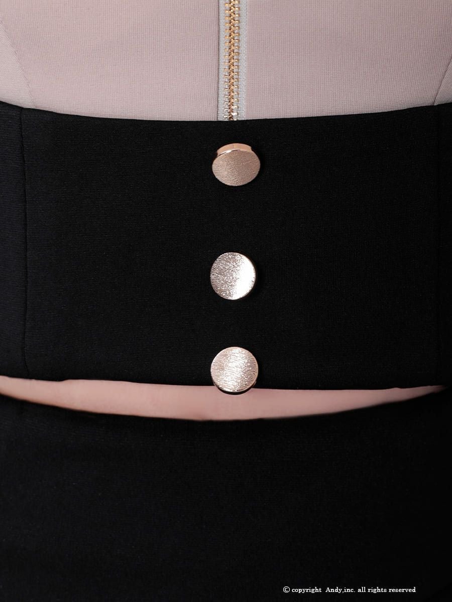 他の画像を見る ヘルシーな肌魅せ☆ [AndyGLAMOROUS/アンディグラマラス] 高級 袖あり リボン ジップデザイン バイカラー スリット セットアップ タイトミニ キャバドレス ¥ 27,500 税込 お気に入りに追加
