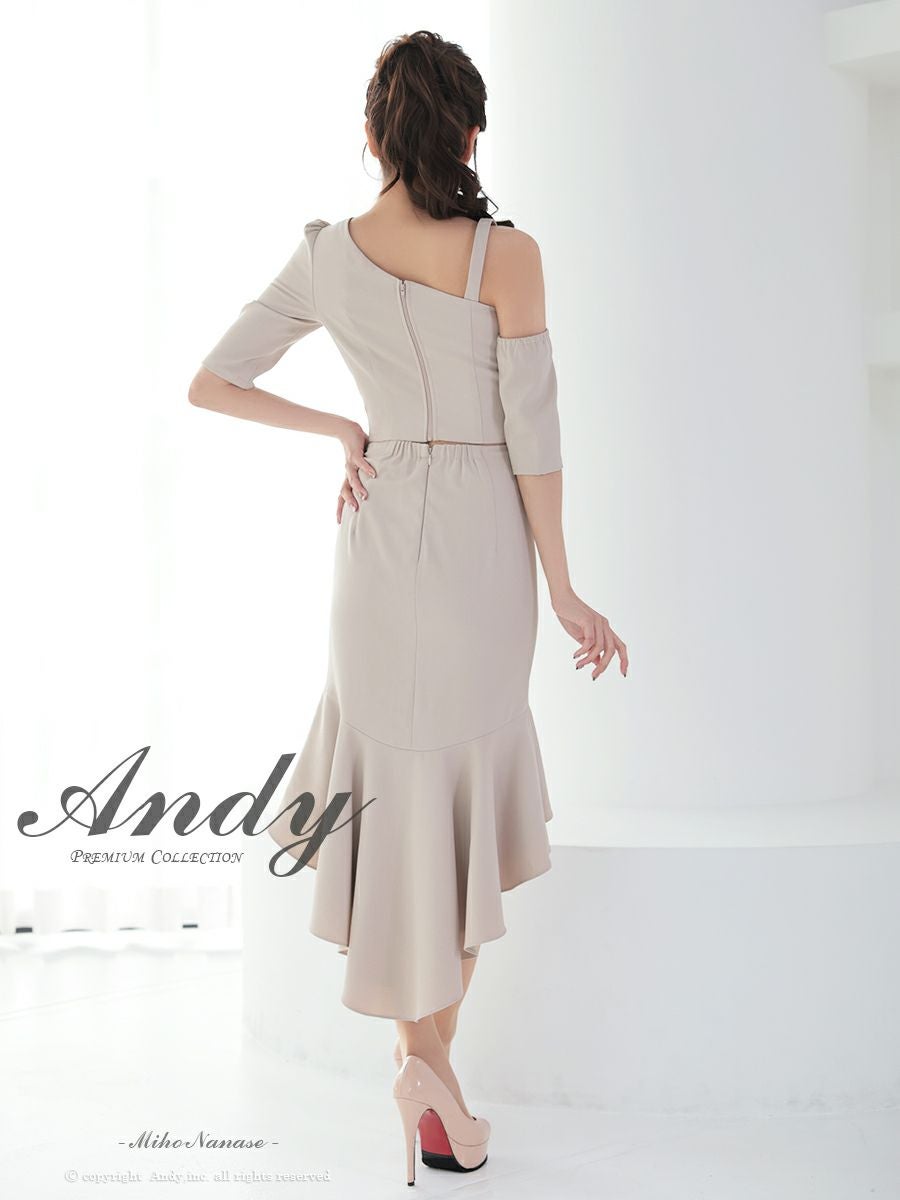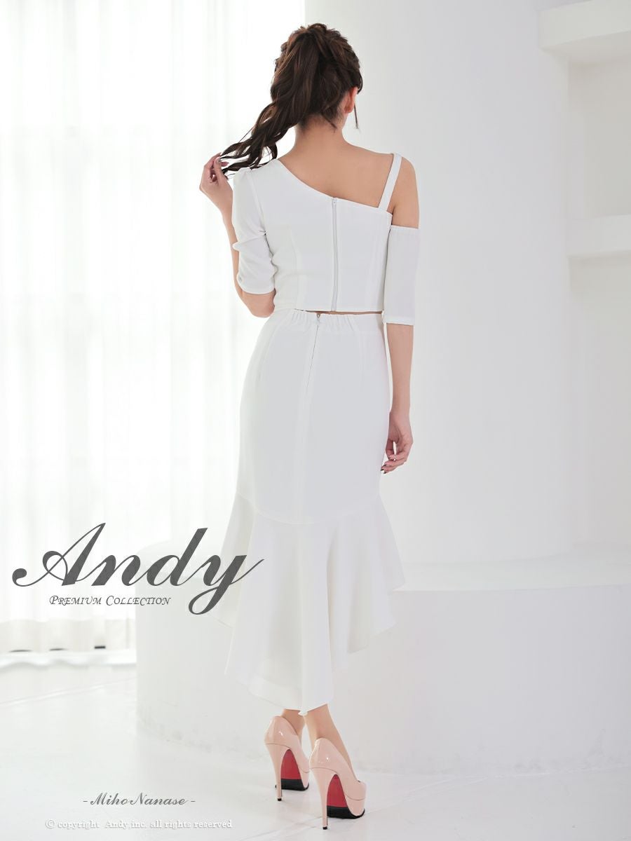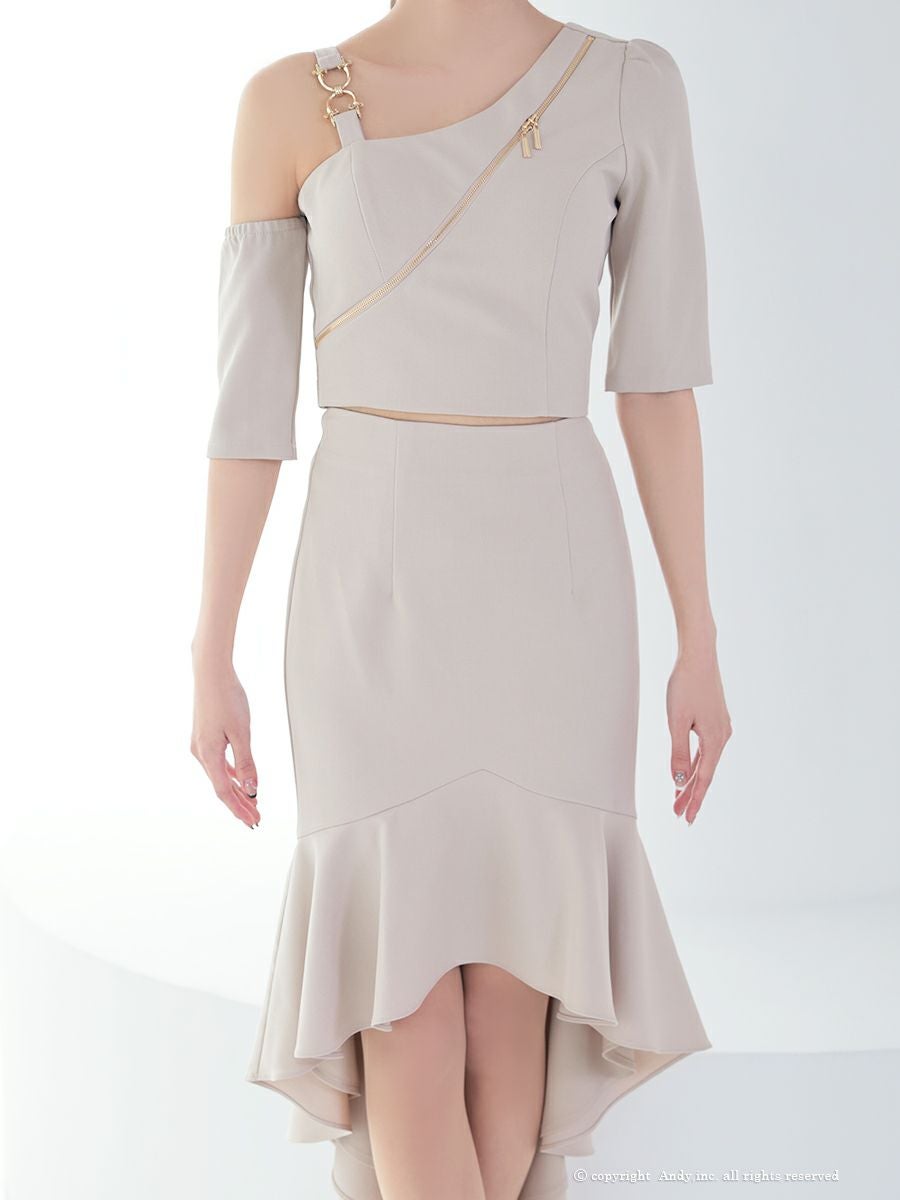 他の画像を見る ワンカラーの上品な装い☆ [Andy/アンディ] 高級 ワンショルダー ジップデザイン ワンカラー マーメイド セットアップ タイト ロングテールドレス ¥ 28,600 税込 お気に入りに追加