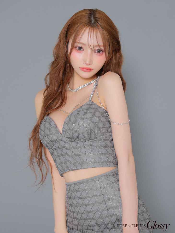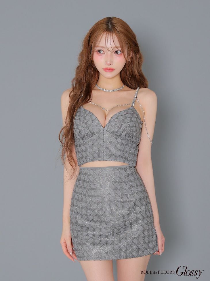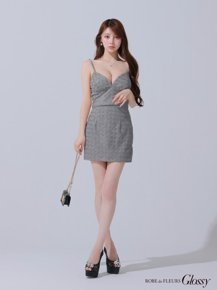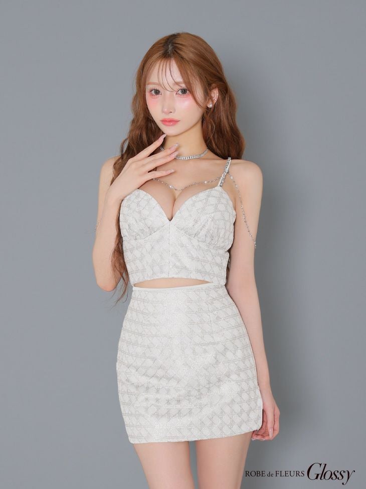 他の画像を見る 魅惑的なバストラインを演出♡ [ROBEdeFLEURSGlossy/ローブドフルールグロッシー] 高級 キャミソール ビジューチェーン付き セットアップ ラメチュール タイトミニドレス ¥ 29,480 税込 お気に入りに追加