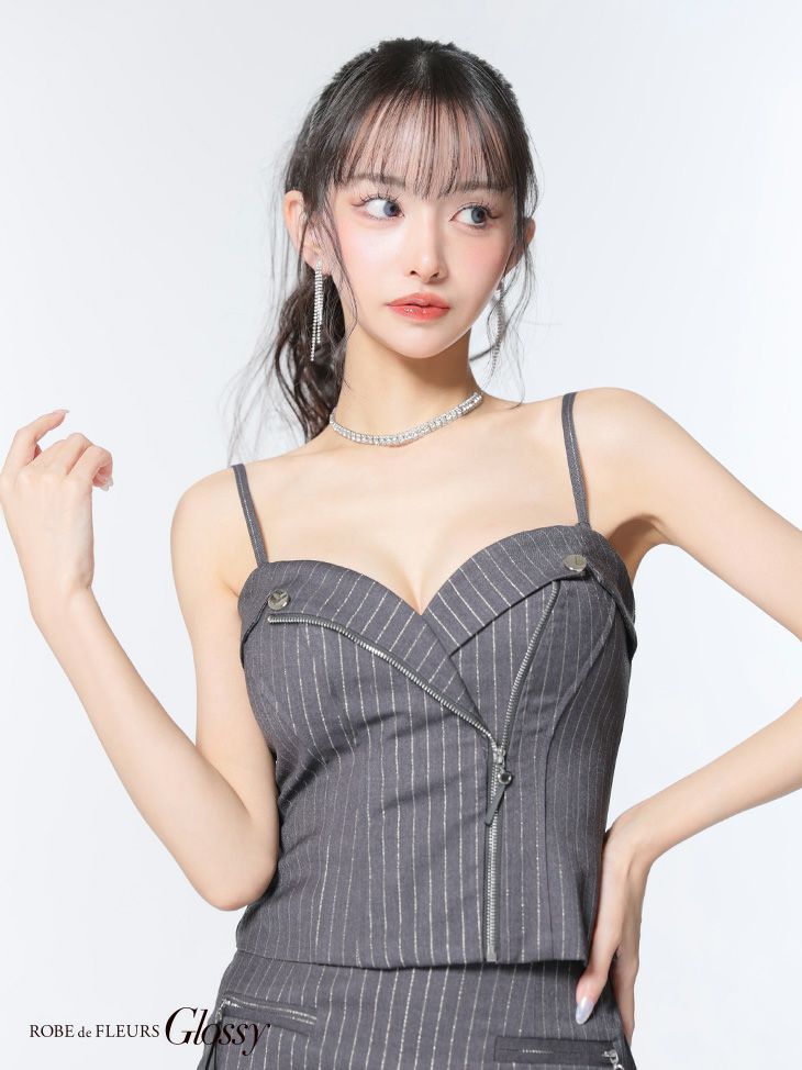 他の画像を見る ストライプが大人っぽさを引き立てる♡ [ROBEdeFLEURSGlossy/ローブドフルールグロッシー] 高級 ハートカット キャミソール ジップ セットアップ ストライプ柄 タイトミニドレス ¥ 28,380 税込 お気に入りに追加