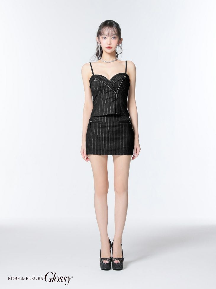 他の画像を見る スタイリッシュな印象に♡ [ROBEdeFLEURSGlossy/ローブドフルールグロッシー] 高級 ハートカット キャミソール ジップ セットアップ ストライプ柄 タイトミニドレス ¥ 28,380 税込 お気に入りに追加