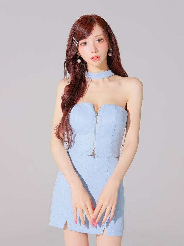 他の画像を見る バストをSEXYにアピールできる♡ [ROBEdeFLEURSGlossy/ローブドフルールグロッシー] 高級 肩出し 二の腕カバー バストカット ジップ ワンカラー ビジュー セットアップ タイトミニドレス ¥ 28,380 税込 お気に入りに追加