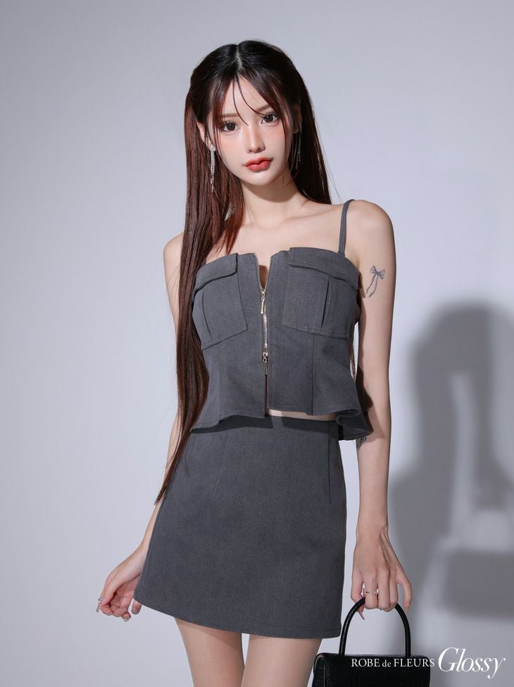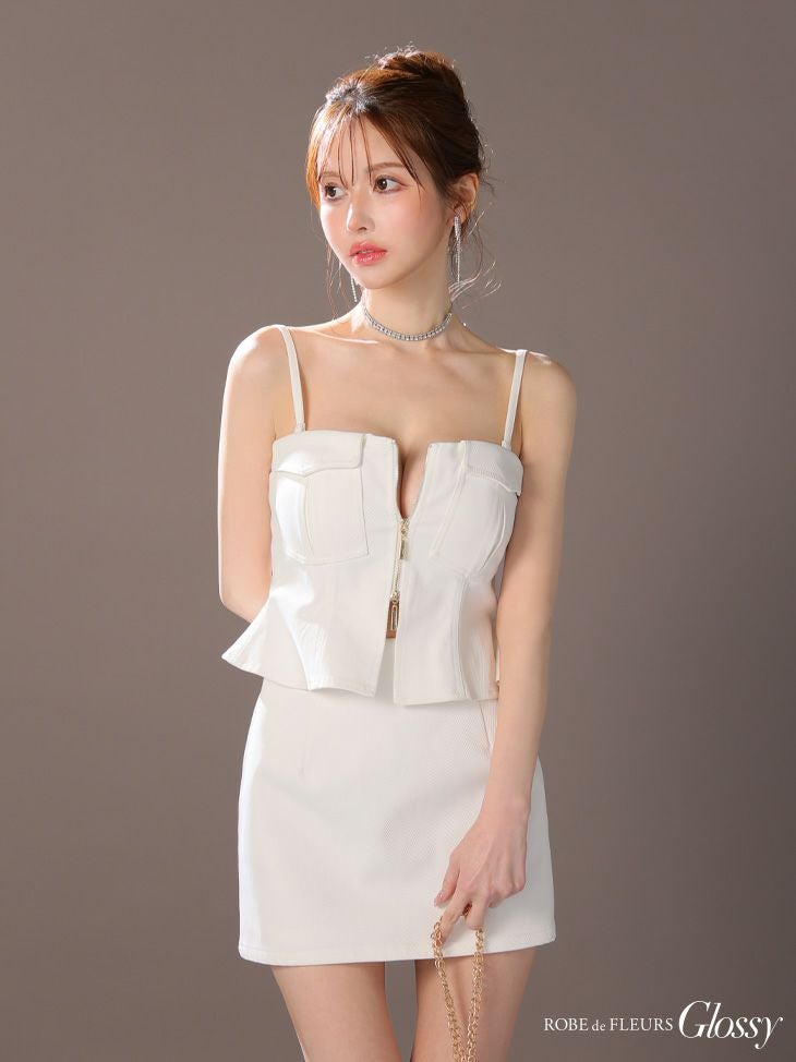 他の画像を見る その気分で着こなしを楽しめる★ [ROBEdeFLEURSGlossy/ローブドフルールグロッシー] 高級2wayキャミソールペプラムフロントジップセットアップタイトミニドレス ¥ 29,480 税込 お気に入りに追加