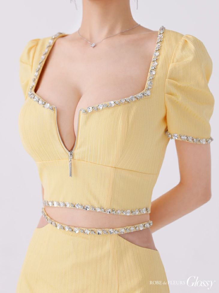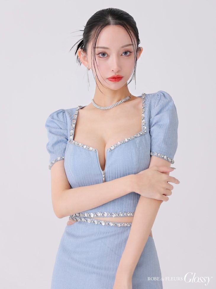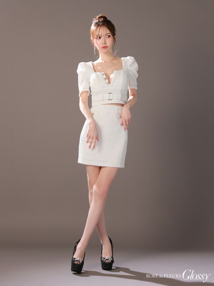 他の画像を見る 大胆な肌見せで視線釘付け★ [ROBEdeFLEURSGlossy/ローブドフルールグロッシー] 高級半袖セットアップフロントジップビジューウエストシアータイトミニドレス ¥ 30,580 税込 お気に入りに追加