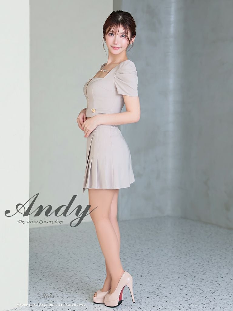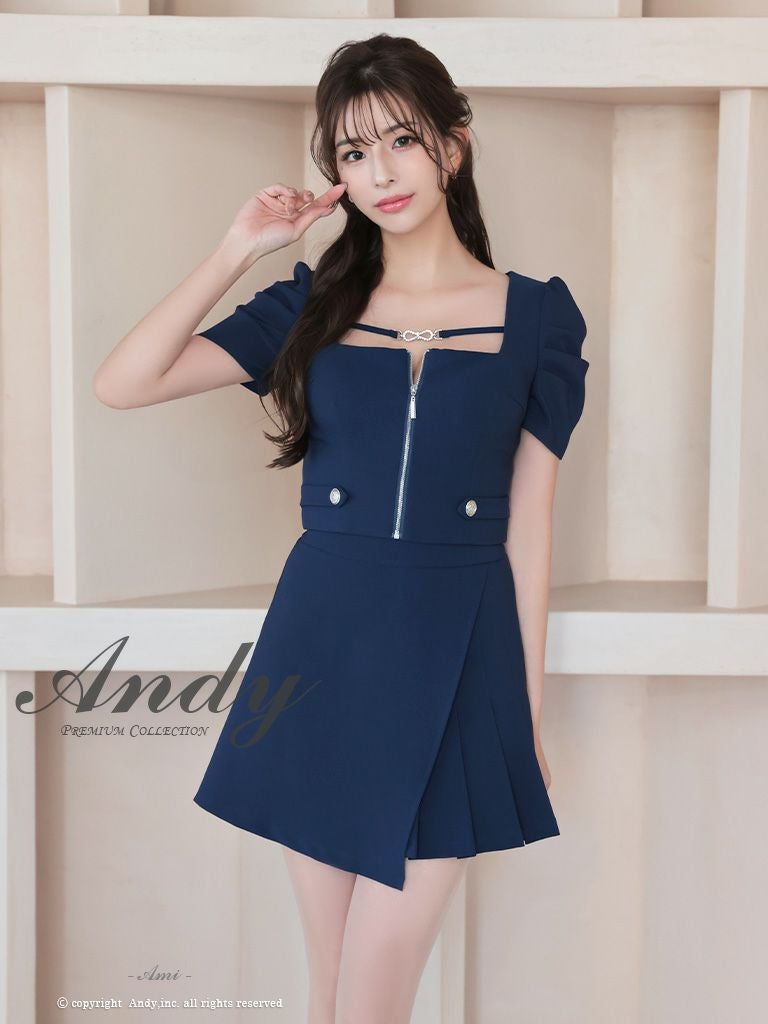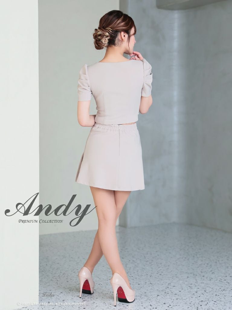 他の画像を見る 上品なワンカラー☆ [Andy/アンディ] 高級 半袖 パフスリーブ セットアップ ウエストカット ワンカラー プリーツ ジップ バストカット 谷間魅せ フレアミニドレス ¥ 28,600 税込 お気に入りに追加