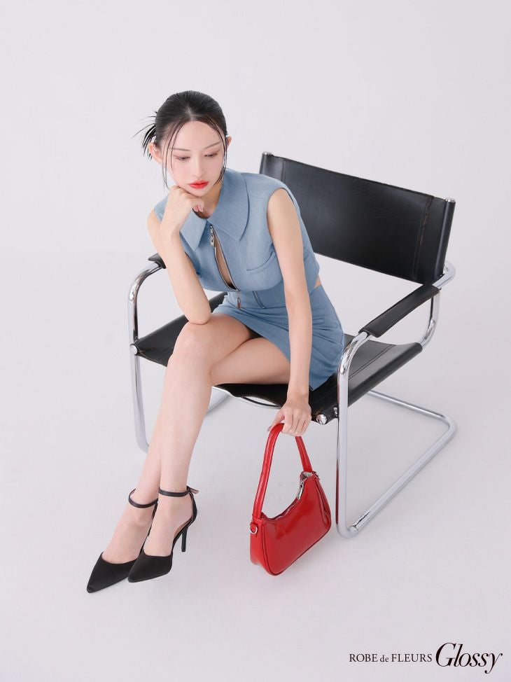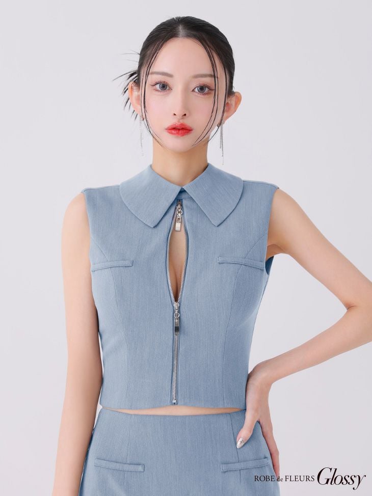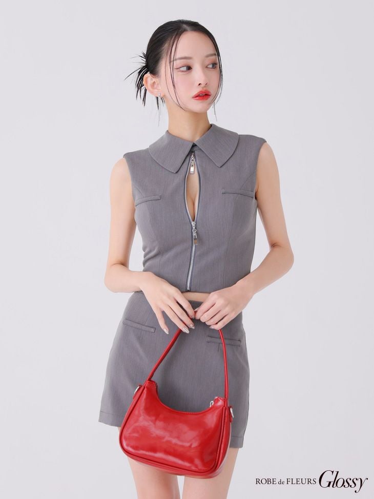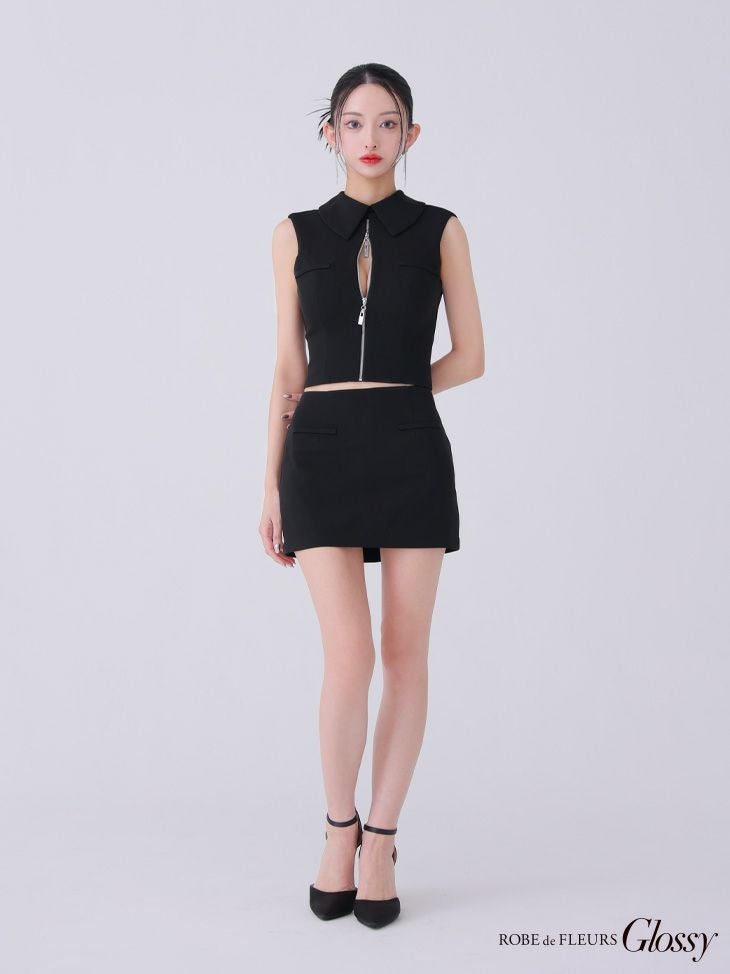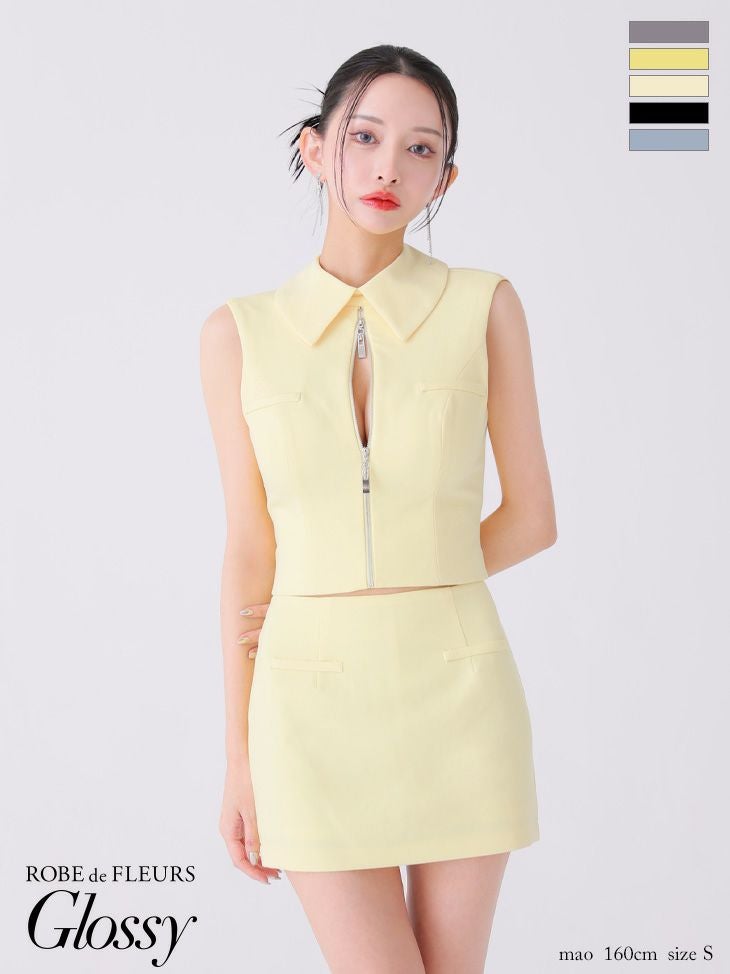 他の画像を見る バストジップでお好みのsexyさに調節★ [ROBEdeFLEURSGlossy/ローブドフルールグロッシー] 高級 襟付き バックオープンジップ ノースリーブ セットアップ タイトミニドレス ¥ 29,480 税込 お気に入りに追加