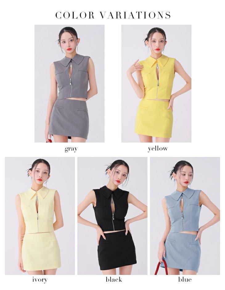 他の画像を見る ジップの調節でセクシーさを演出☆ [an/アン] 高級 ノースリーブ ジップ ダブルボタン バストカット セットアップ 谷間魅せ フレアミニドレス ¥ 29,700 税込 お気に入りに追加