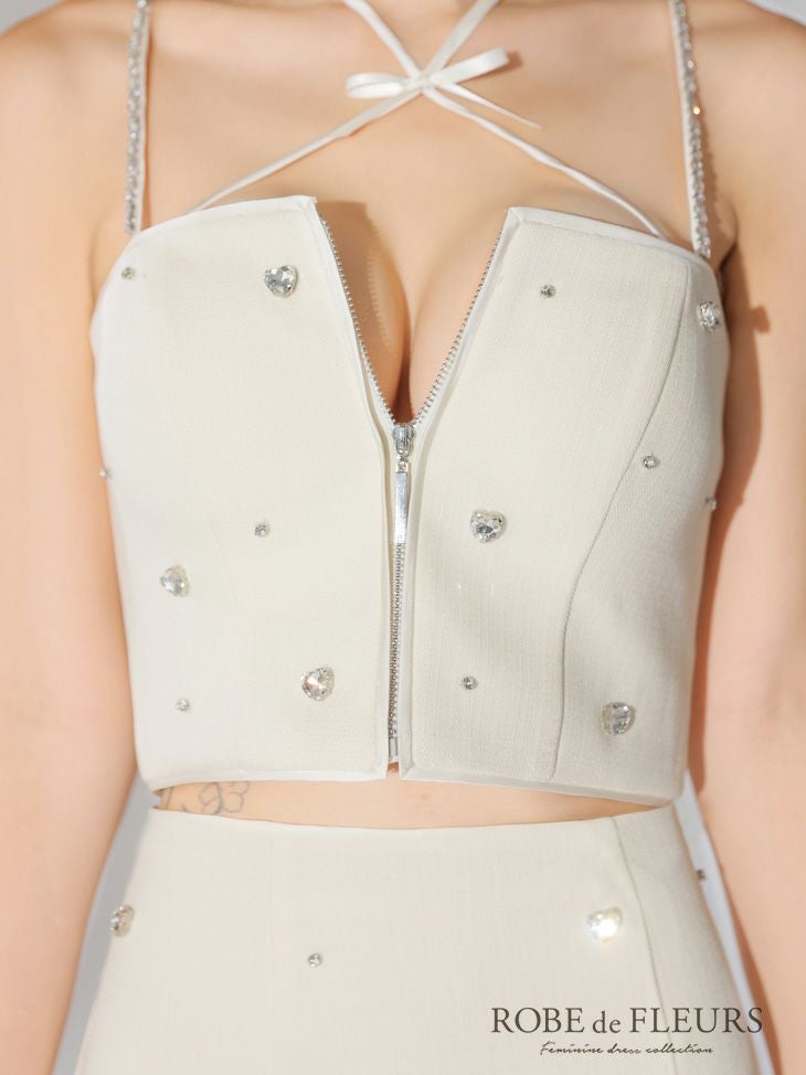 他の画像を見る 煌めくハートビジューが可愛い☆ [ROBEdeFLEURS/ローブドフルール] 高級2wayキャミソールセットアップジップハートビジューワンカラータイトミニドレス ¥ 29,480 税込 お気に入りに追加