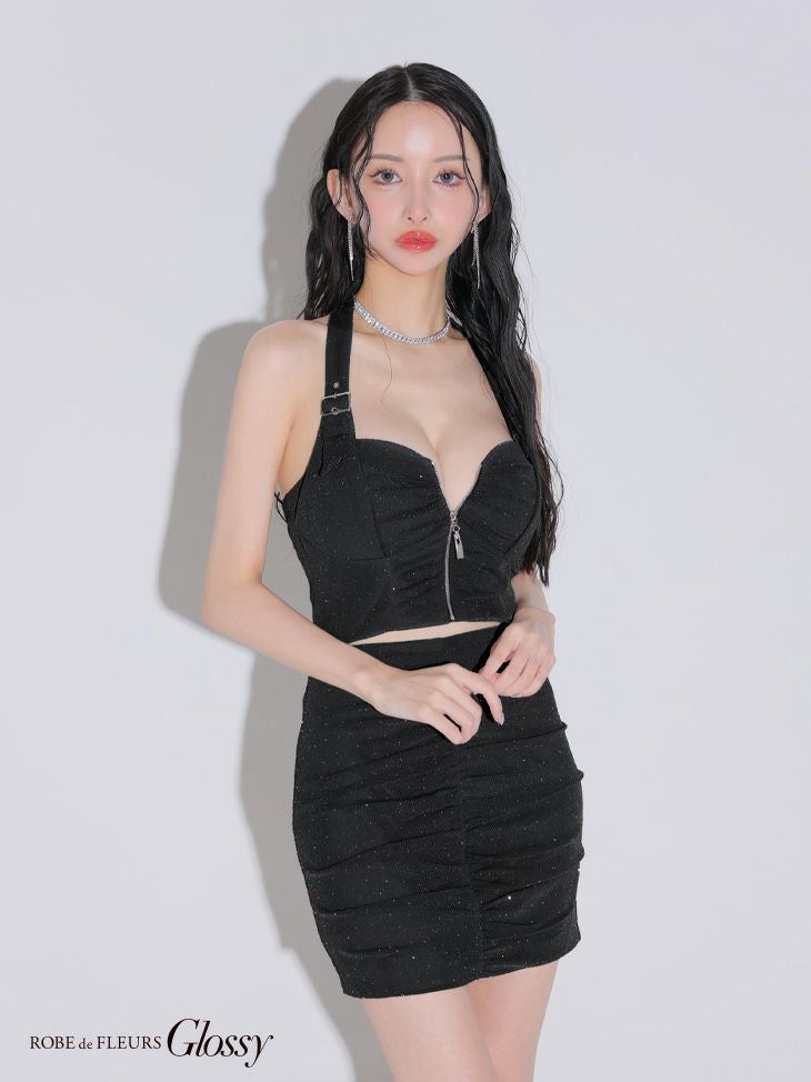 他の画像を見る 谷間を強調するsexyデザイン☆ [ROBEdeFLEURSGlossy/ローブドフルールグロッシー] 高級ホルターネックセットアップスタッズバストジップギャザータイトミニドレス ¥ 28,380 税込 お気に入りに追加