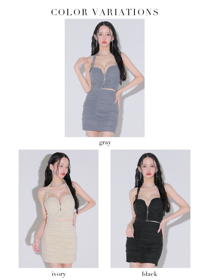 他の画像を見る 大人の色気を醸し出す☆ [ROBEdeFLEURSGlossy/ローブドフルールグロッシー] 高級ホルターネックセットアップスタッズバストジップギャザータイトミニドレス ¥ 28,380 税込 お気に入りに追加